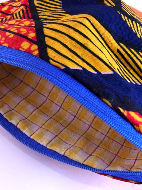 西アフリカのプリント布(パーニュ)で作ったポーチです。