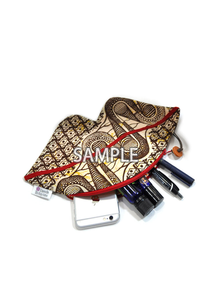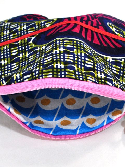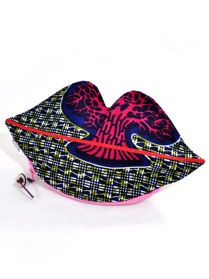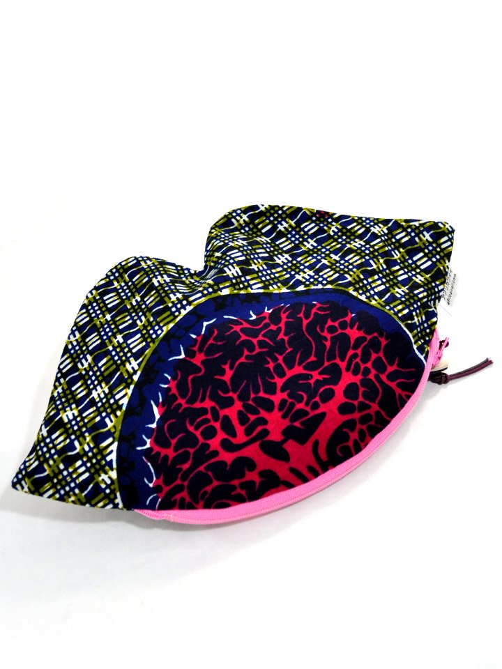 西アフリカのプリント布で作った「くちびる」の形のポーチです。