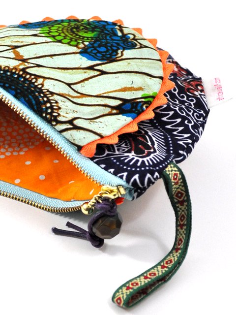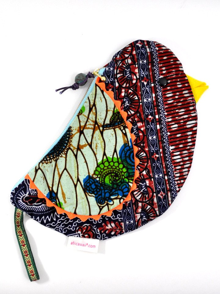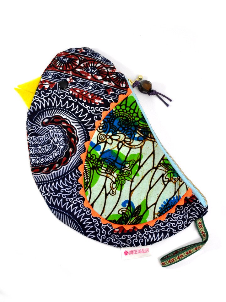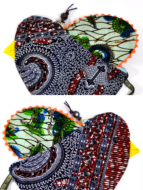 西アフリカのプリント布で作った鳥の形のポーチです。