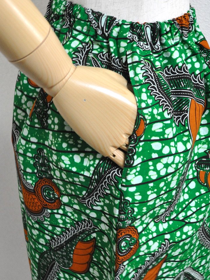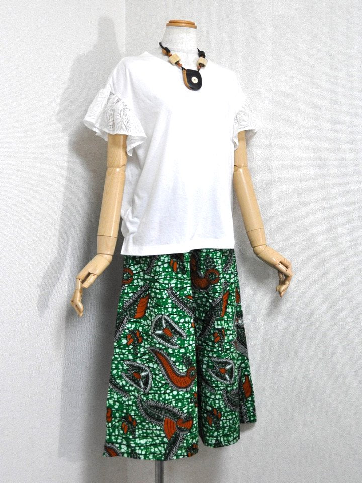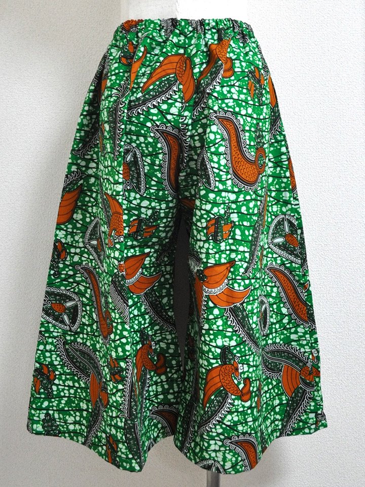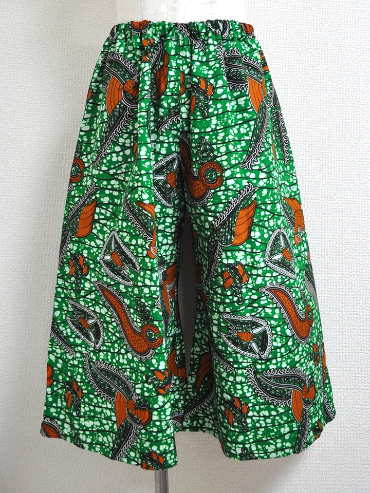 ゆったりとしていて動きやすい、アフリカンプリントでつくった「ガウチョパンツ」です。