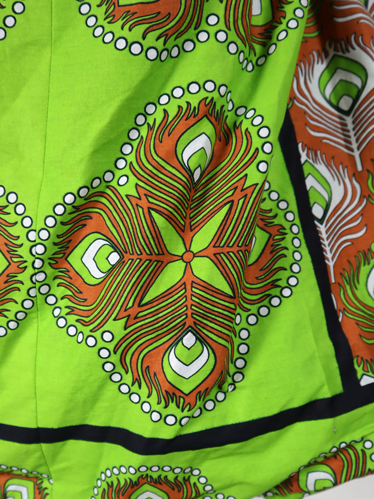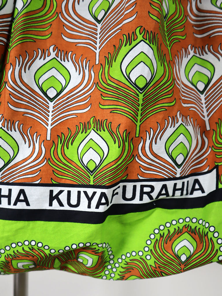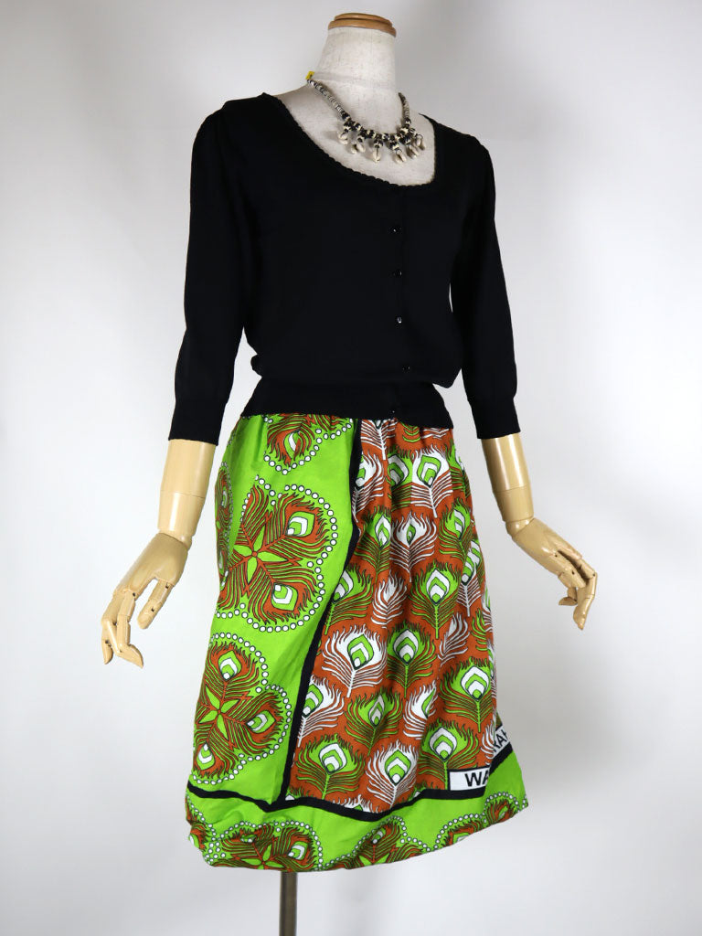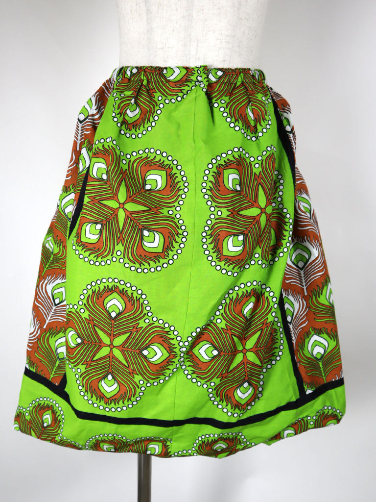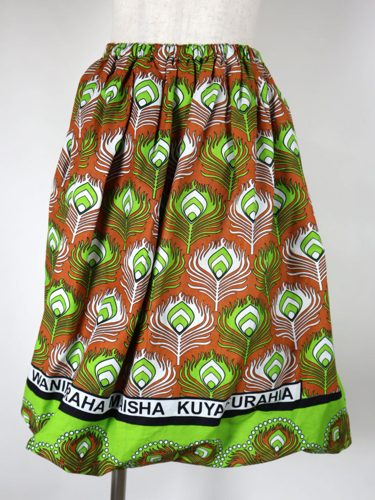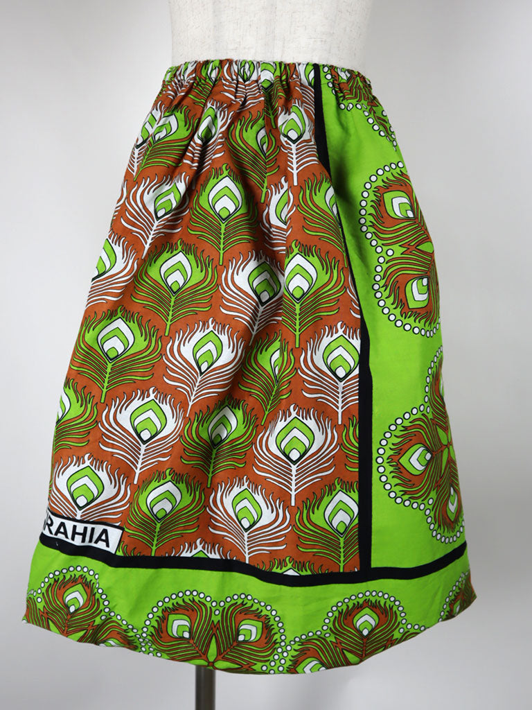 カンガのバルーンスカート・グリーンピーコックフェザー