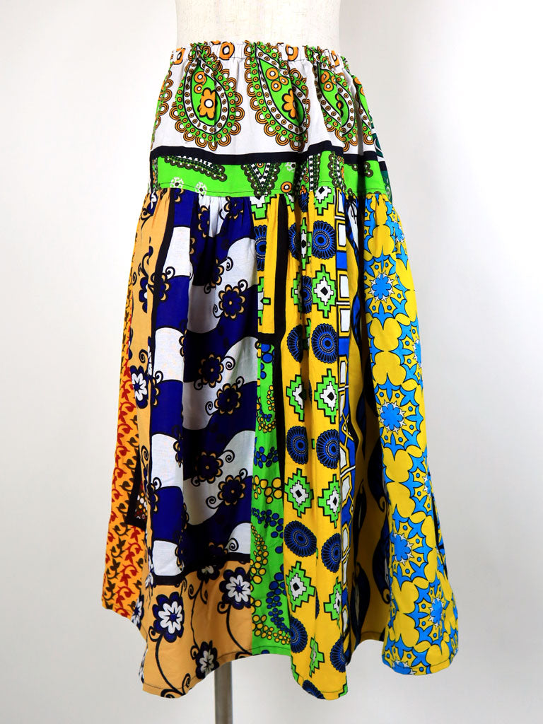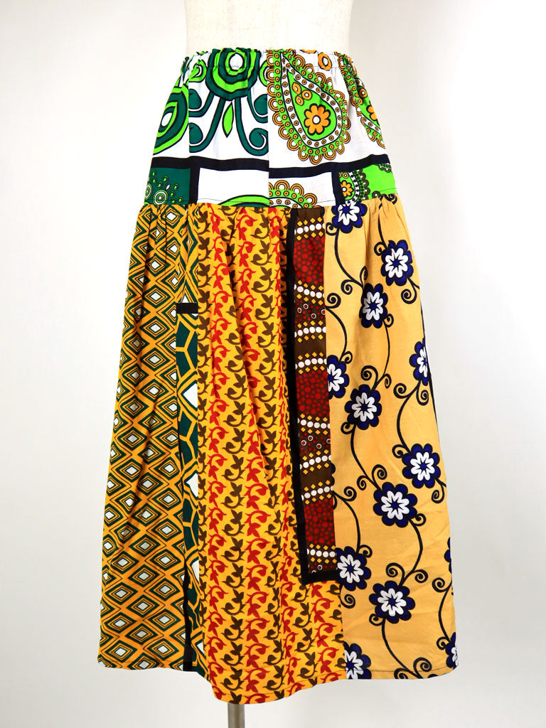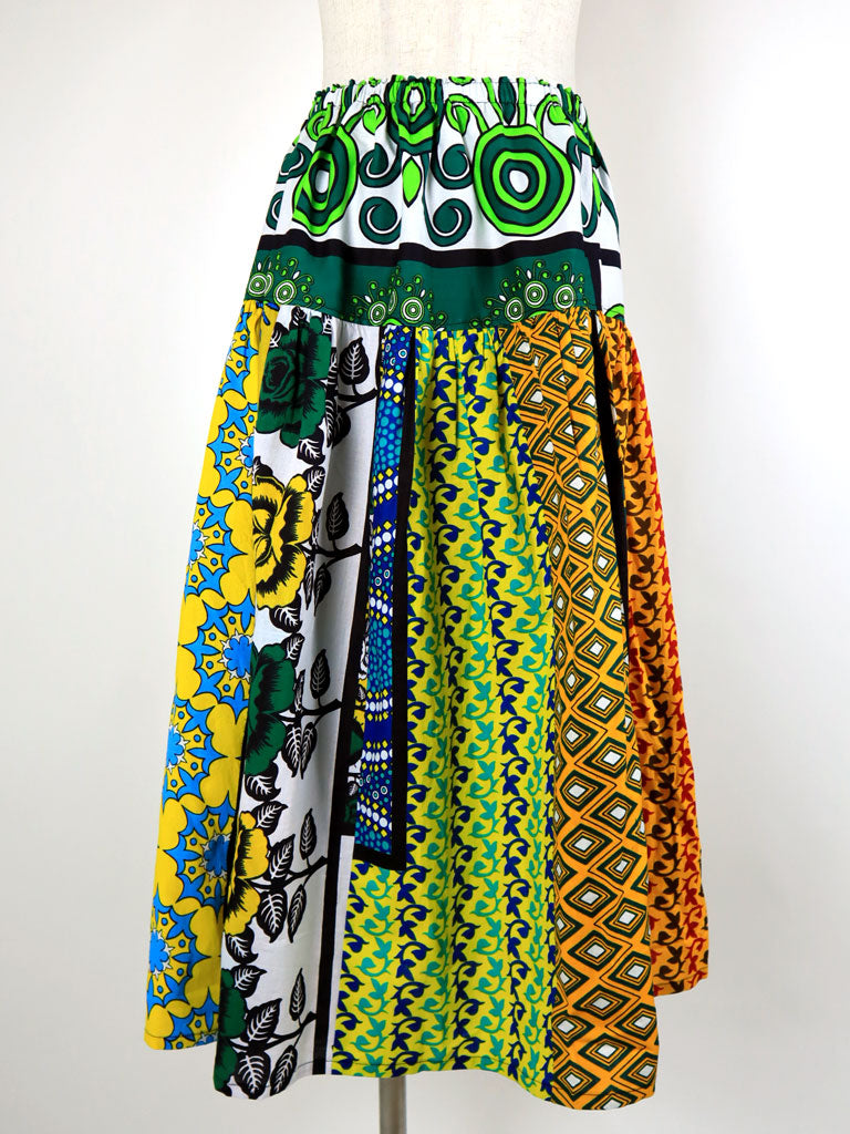9枚の柄違いのカンガ(東アフリカの布)を贅沢に使った一点もののロングスカートです。