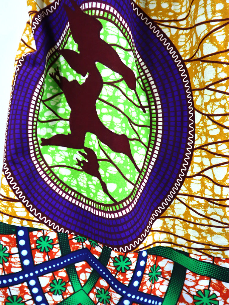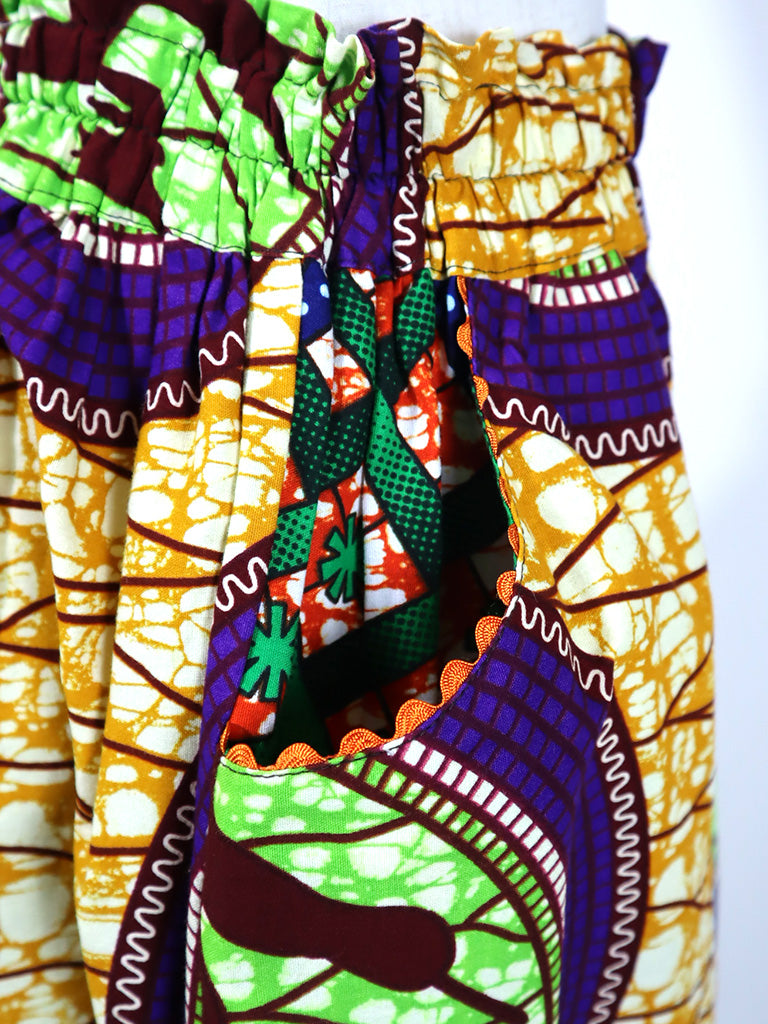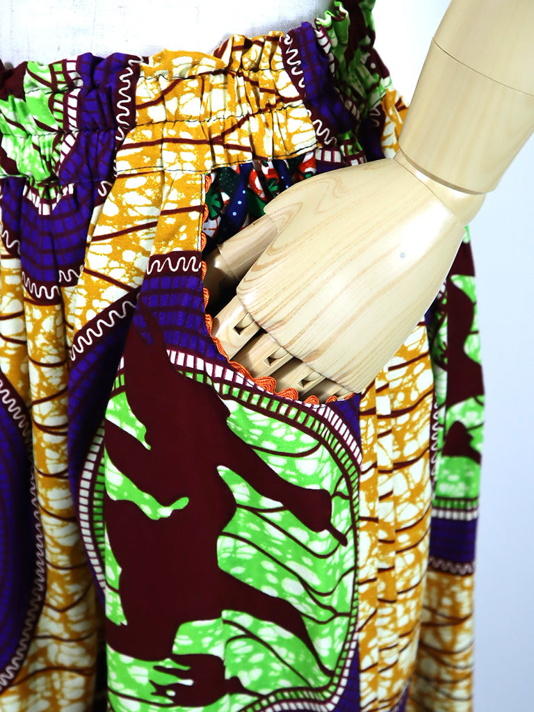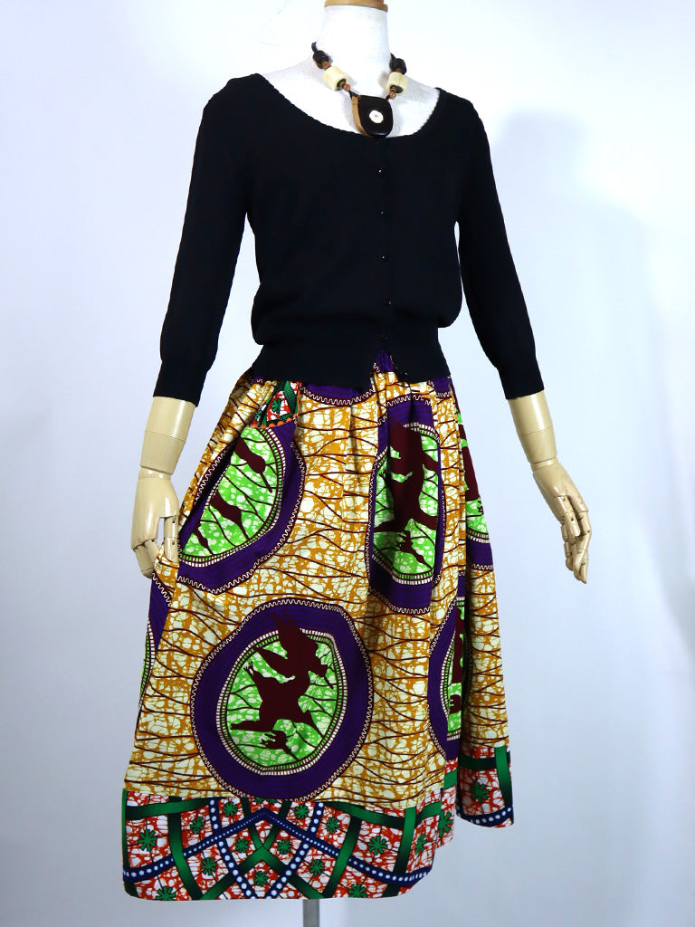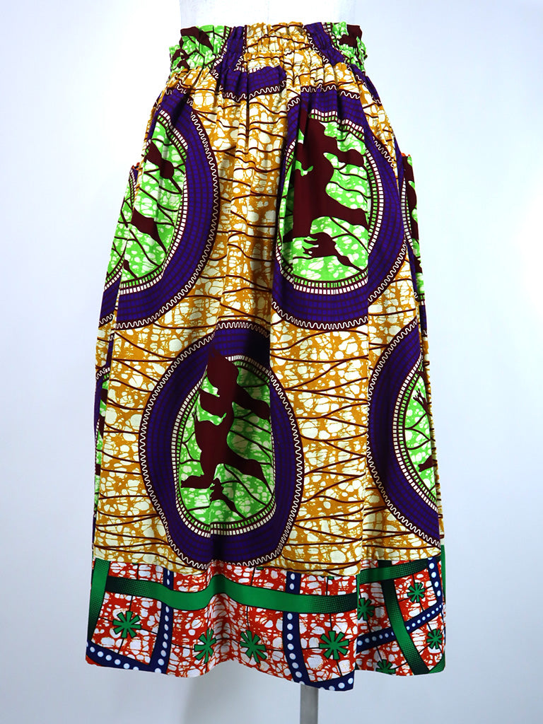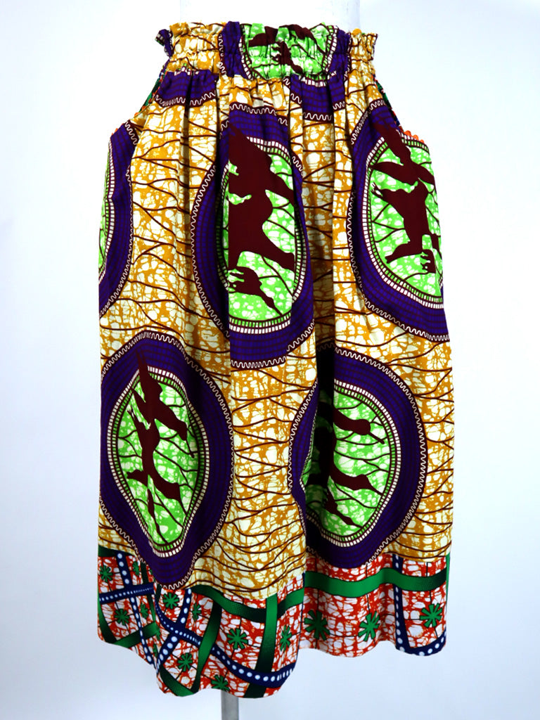 ポケット付きギャザー切り替えスカート・バード×グリーンフラワー