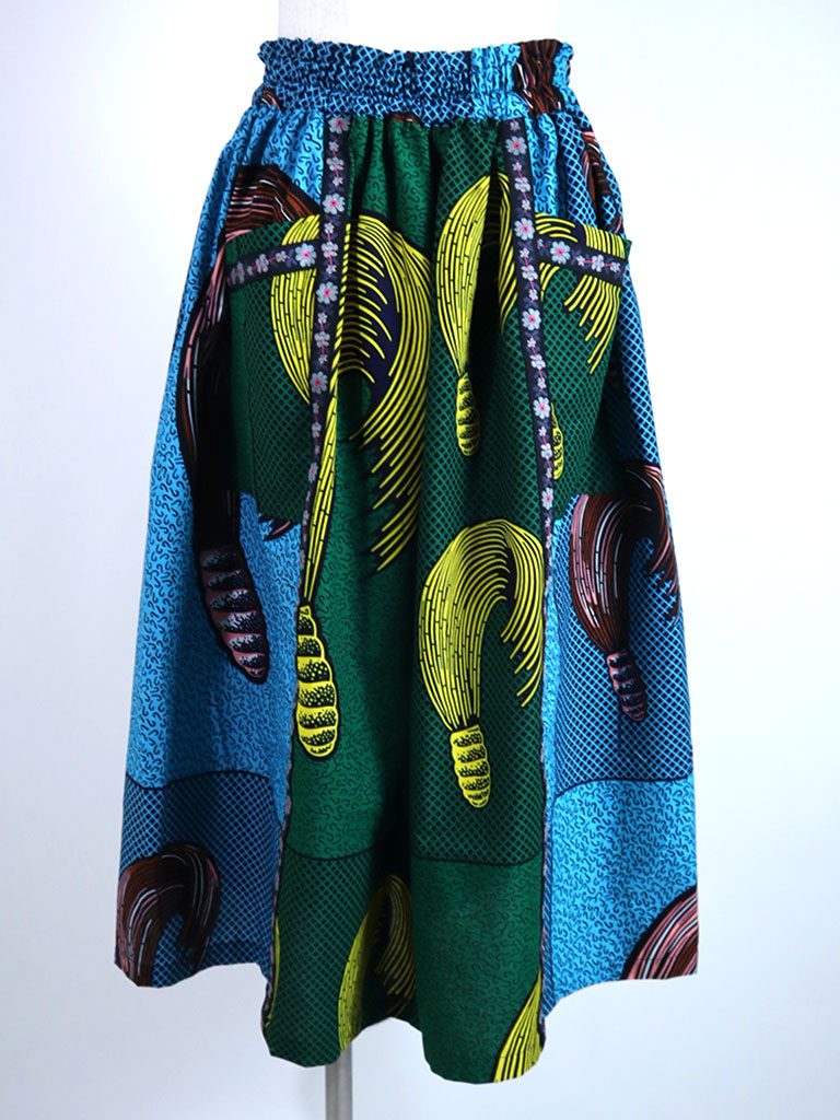 ポケット付きフォークロア・ロングスカート・ブルーム