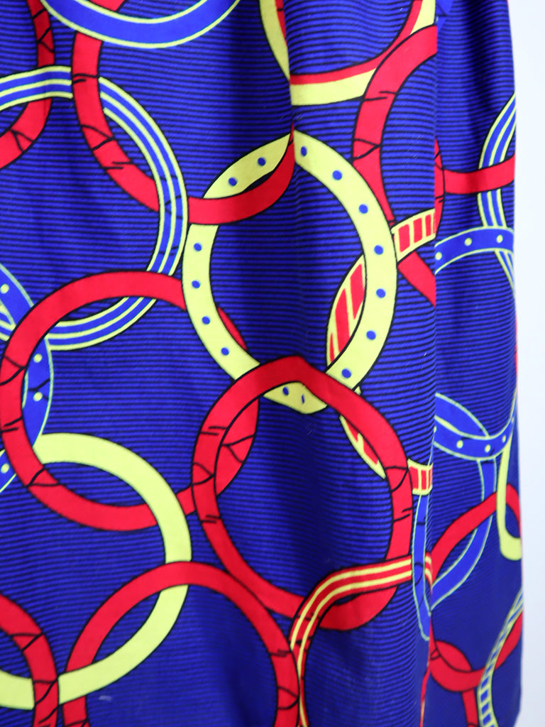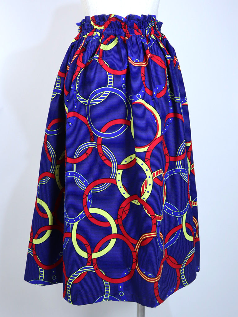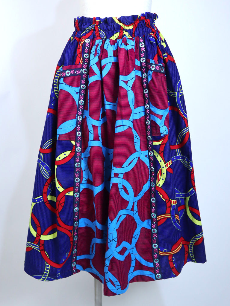 ポケット付きフォークロア・ロングスカート・ブルー×リングス