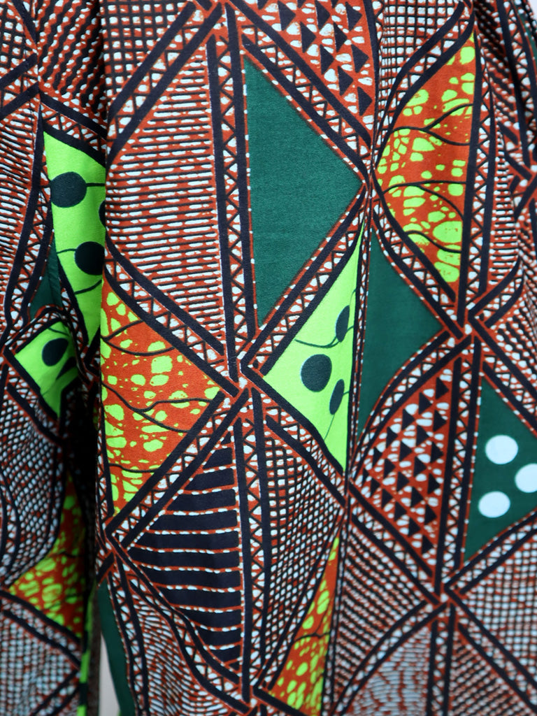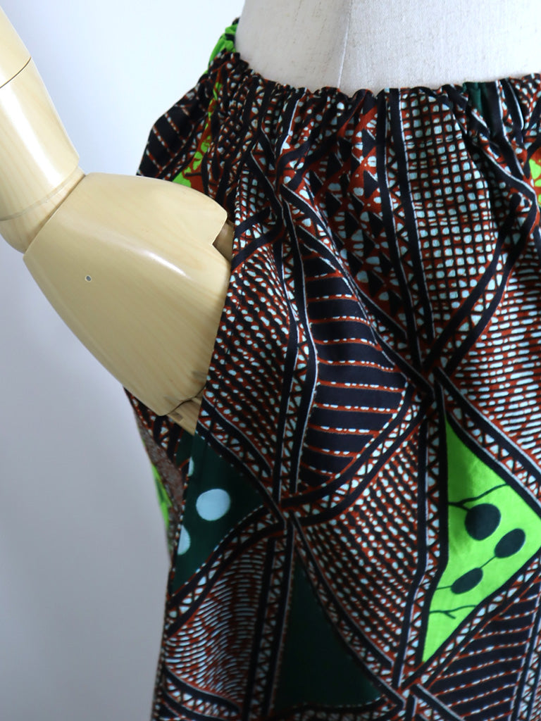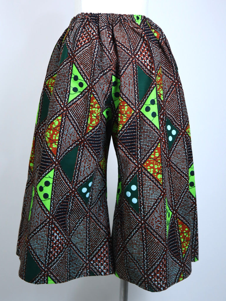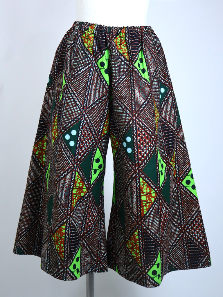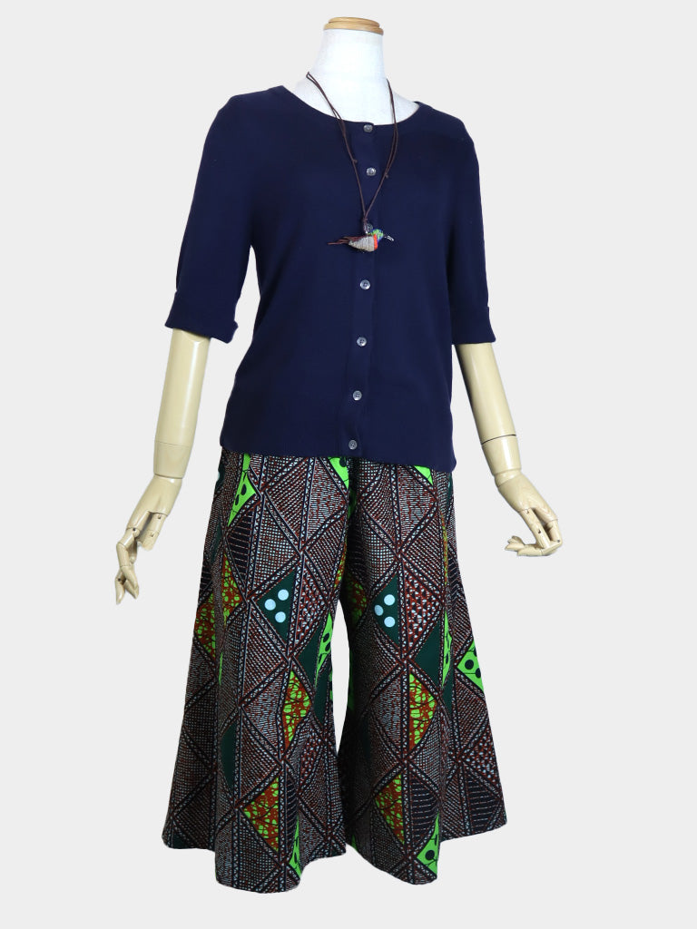 ゆったりとしていて動きやすい、アフリカンプリントでつくった「ガウチョパンツ」です。