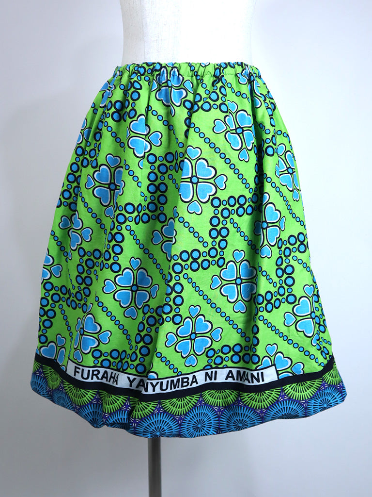 カンガのバルーンスカート・グリーン×ブルークローバー
