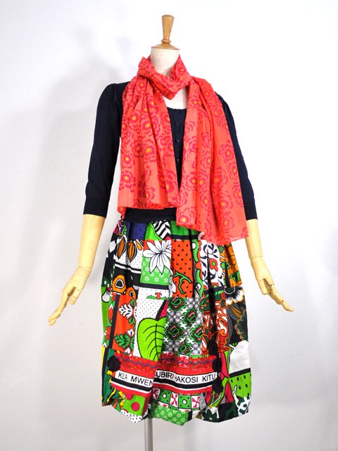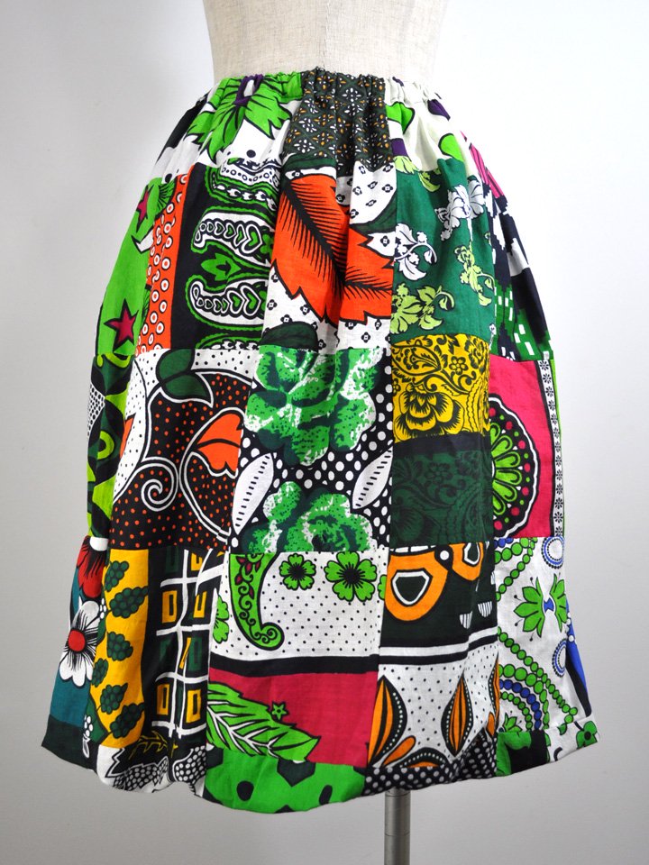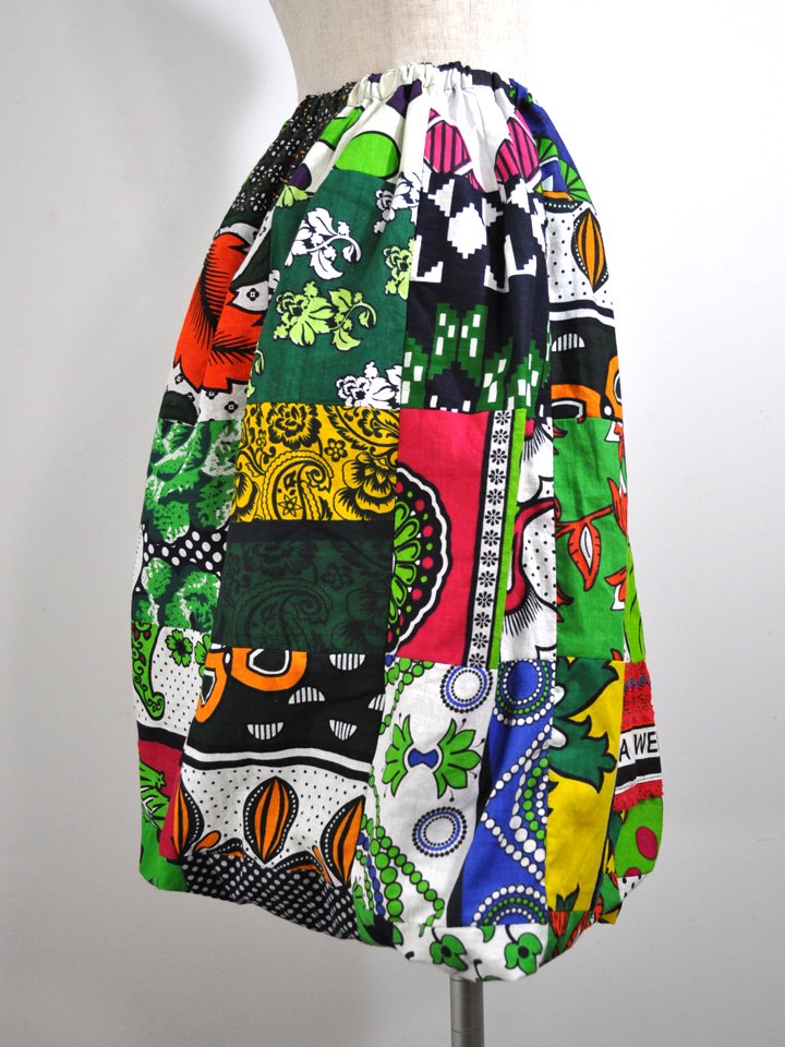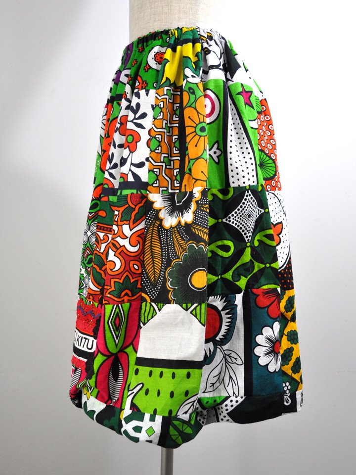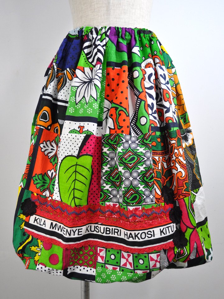 カンガのデコパッチワーク・バルーンスカート・ピンク&グリーン