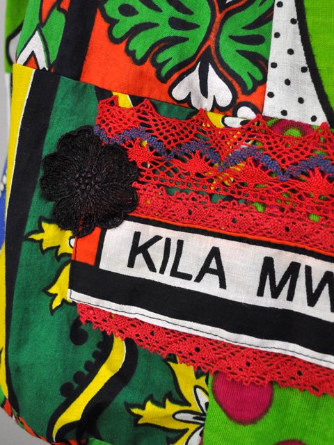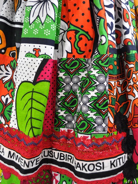 東アフリカの布(カンガ)をたくさん使い、パッチワークした贅沢な作品。