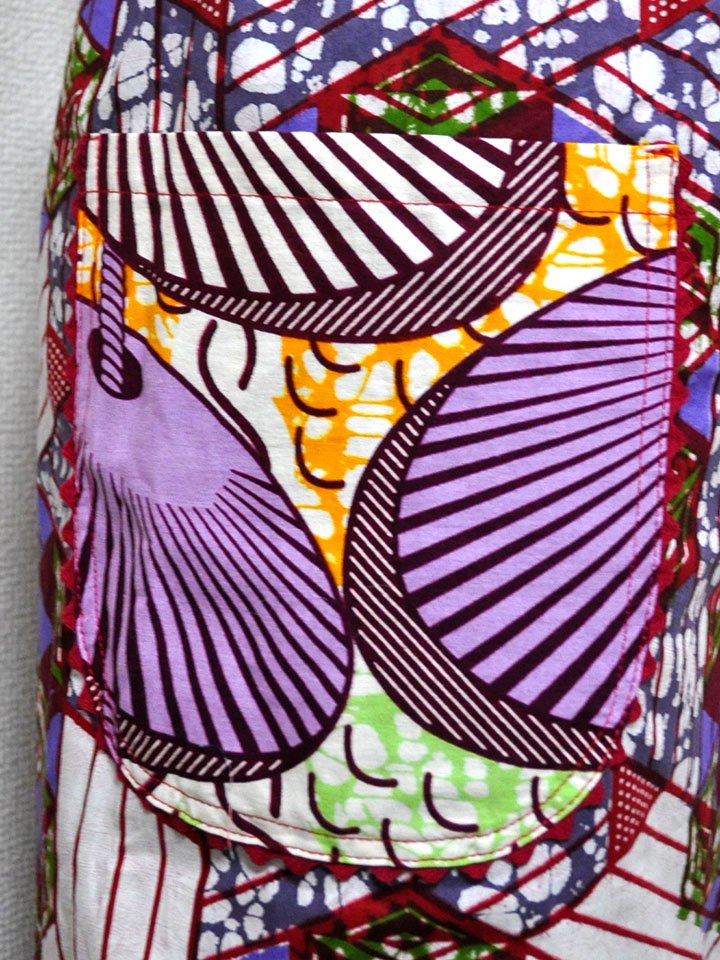 ポケット(両脇にひとつずつ)には山道テープをつけました。二重にステッチでしっかりと縫っているため、丈夫です。