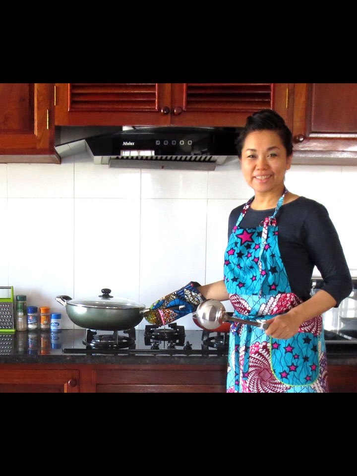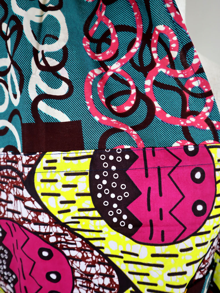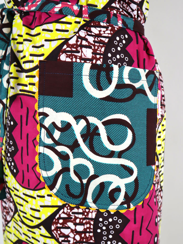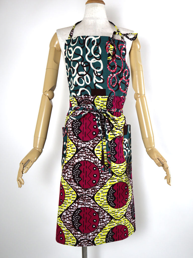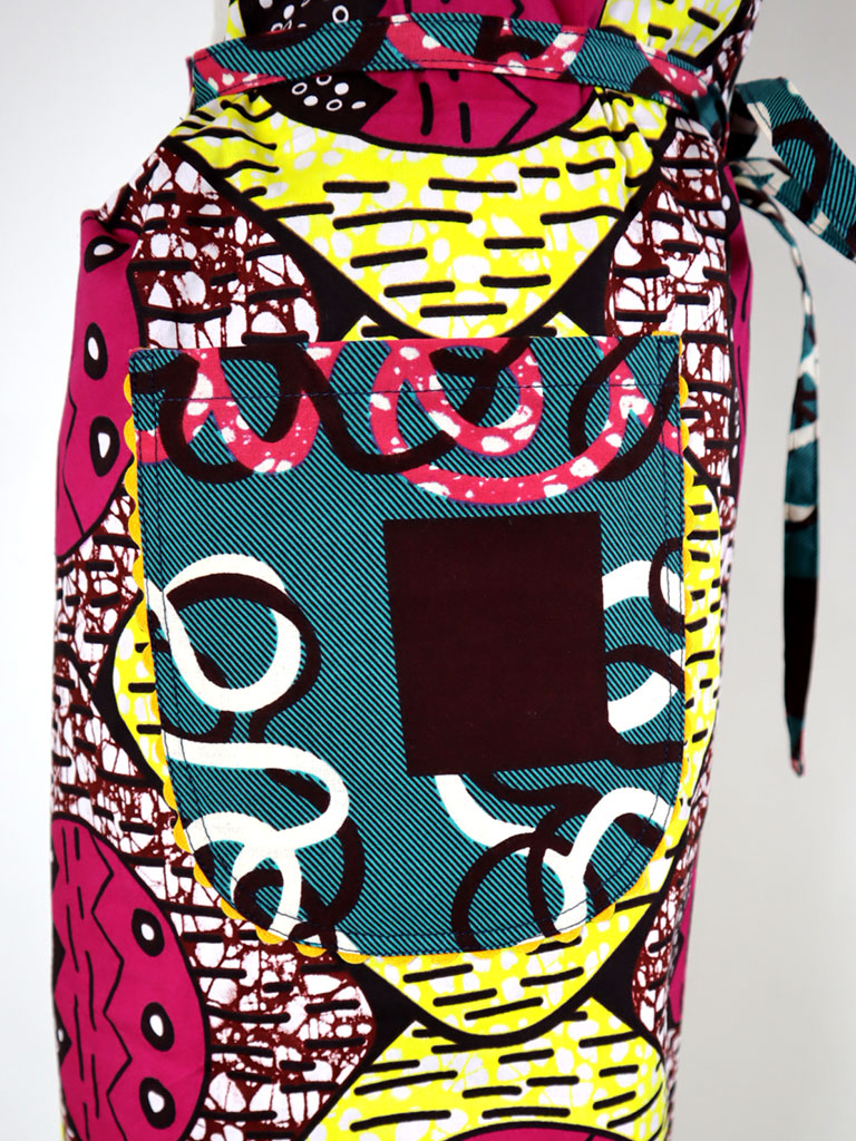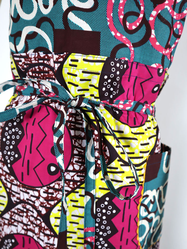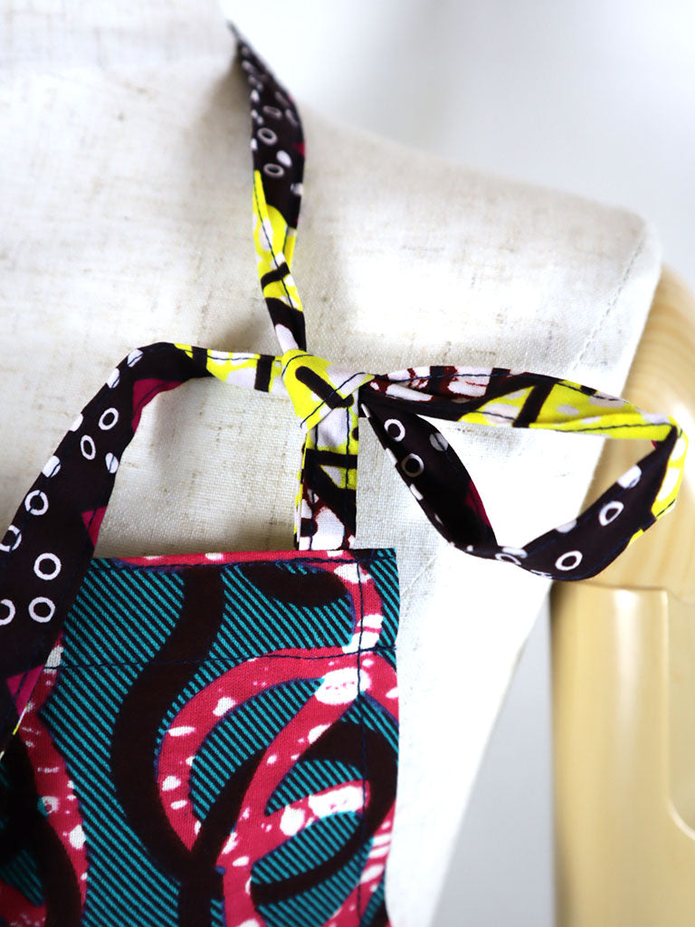 西アフリカのテキスタイルでつくったエプロンです。