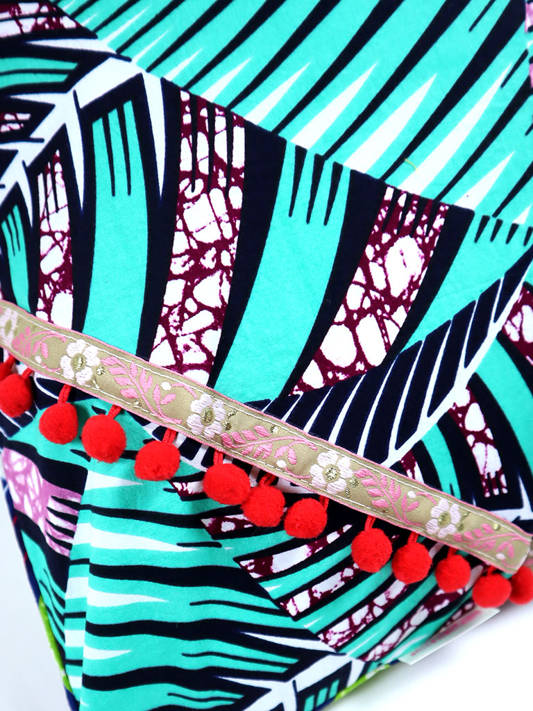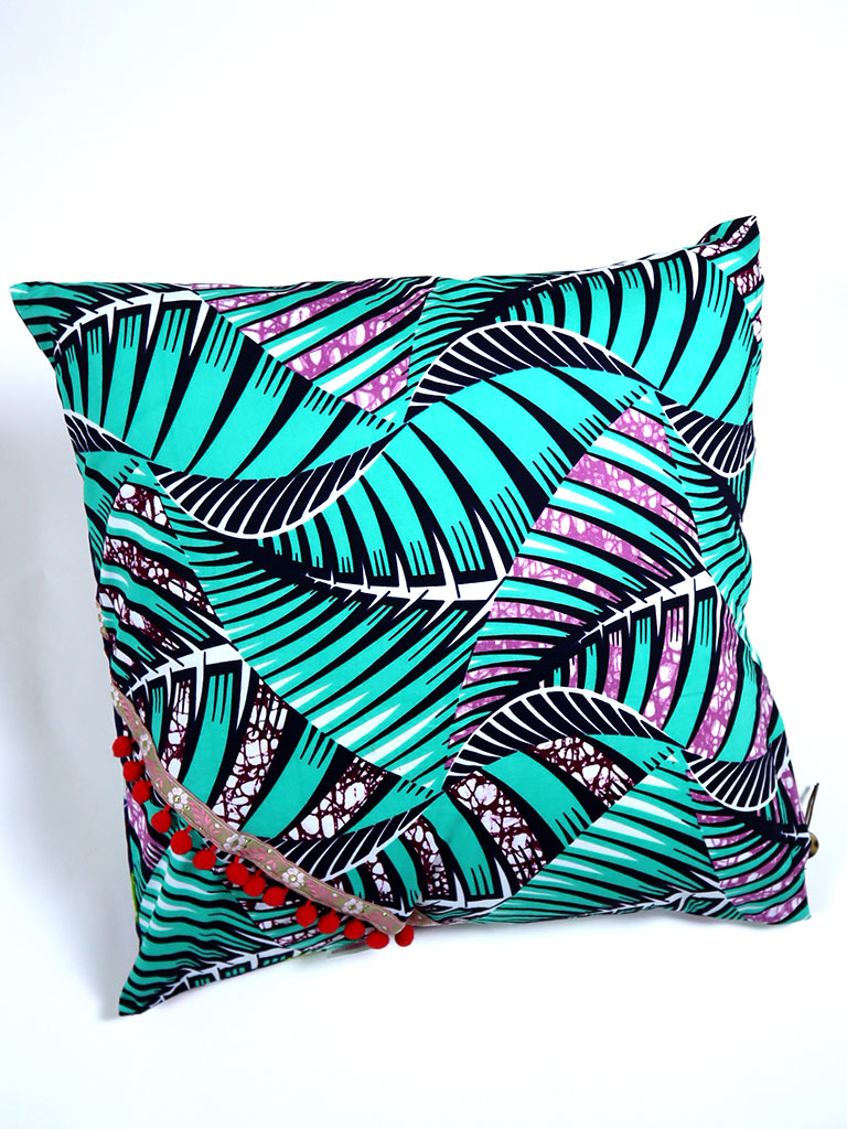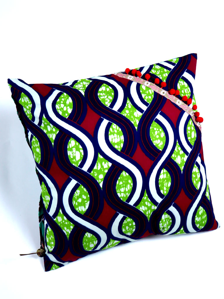 アフリカンプリントの表裏別柄デコラティブ・クッション 1003g