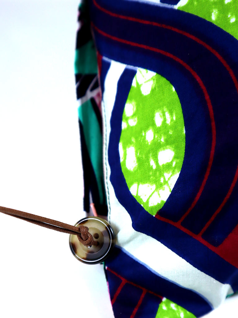 ファスナーの先には固めのヒモとボタンをつけ、開閉しやすくしました。