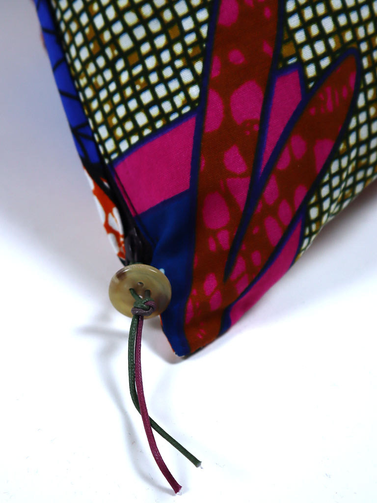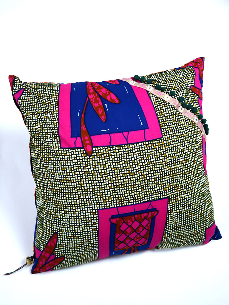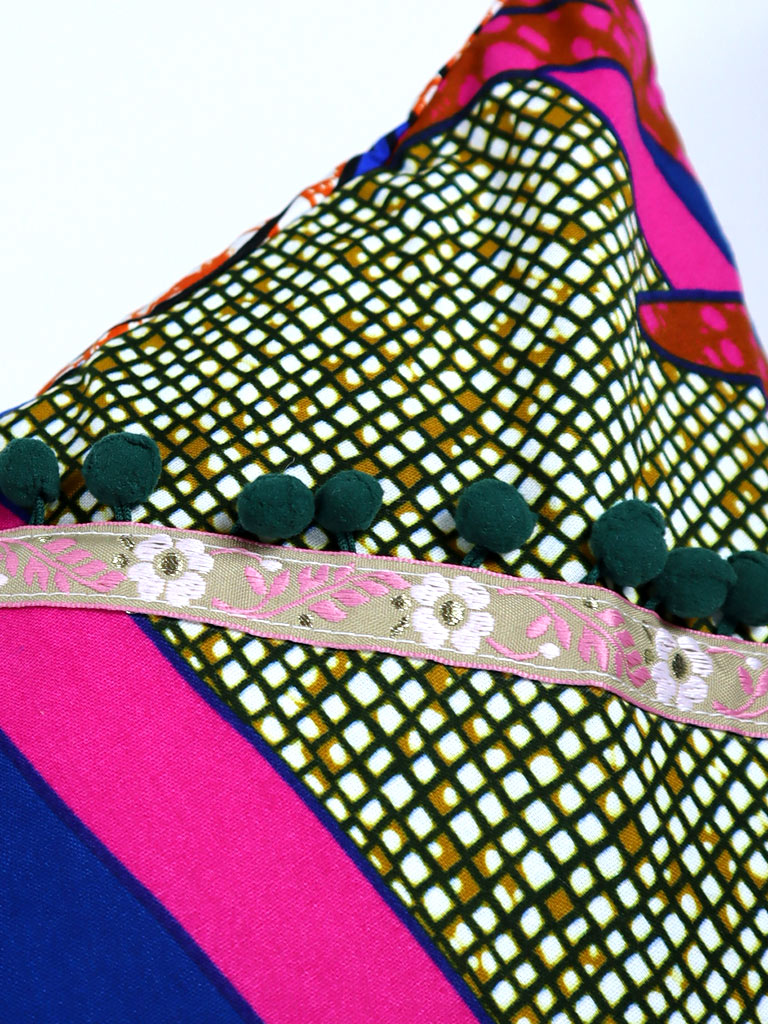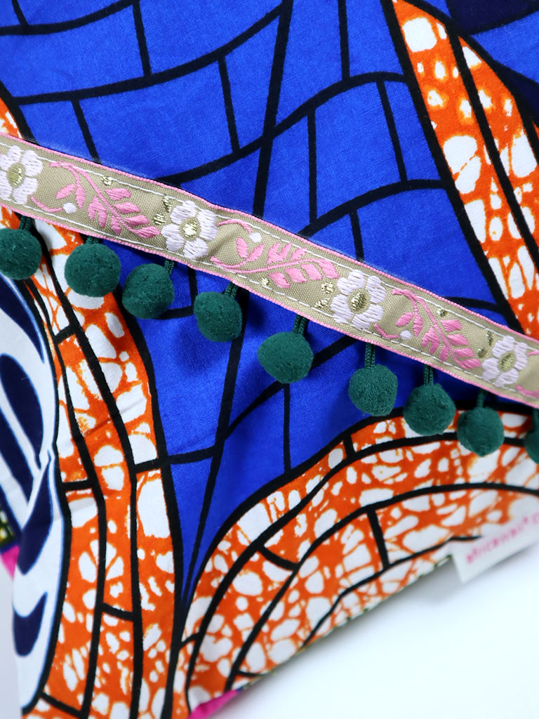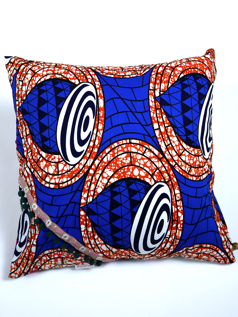 アフリカンプリントの表裏別柄デコラティブ・クッション 1003a