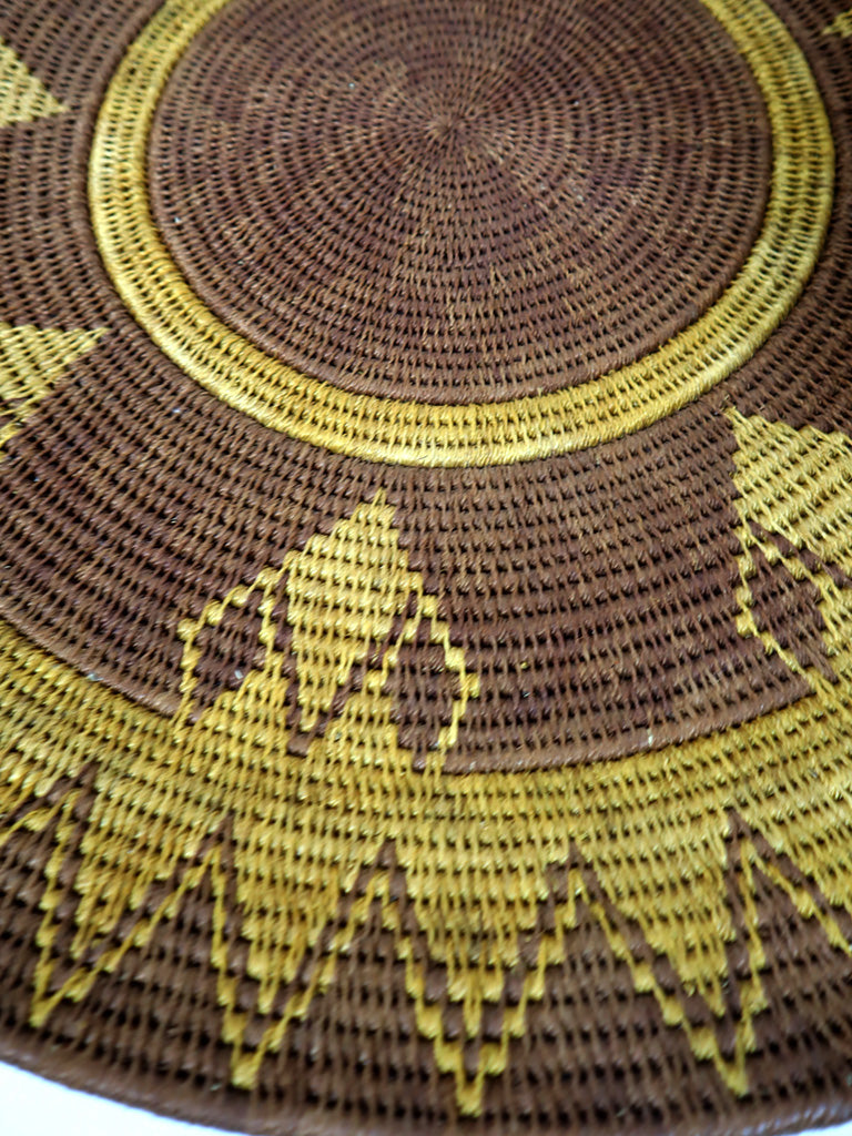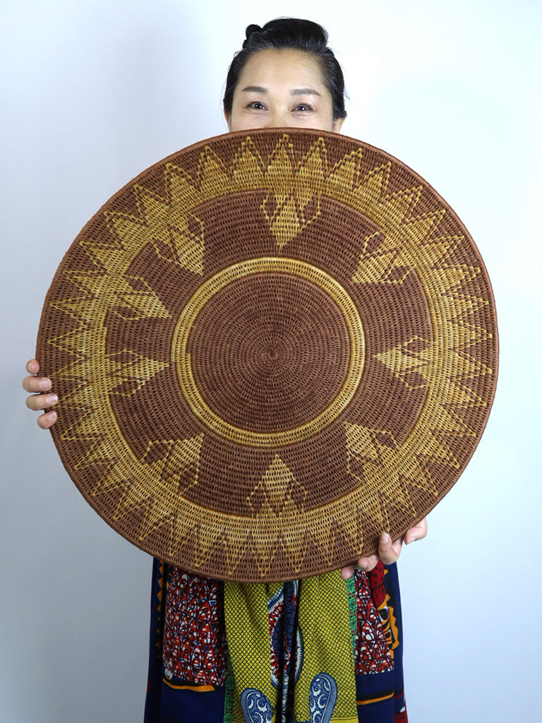 【最大サイズ】アフリカ(ジンバブエ)のサイザルバスケット/平かごボウル柄XXL-A