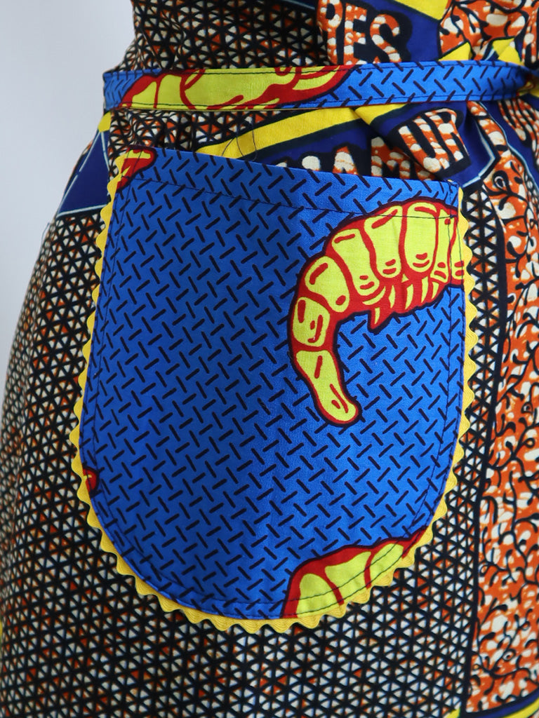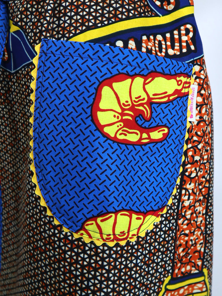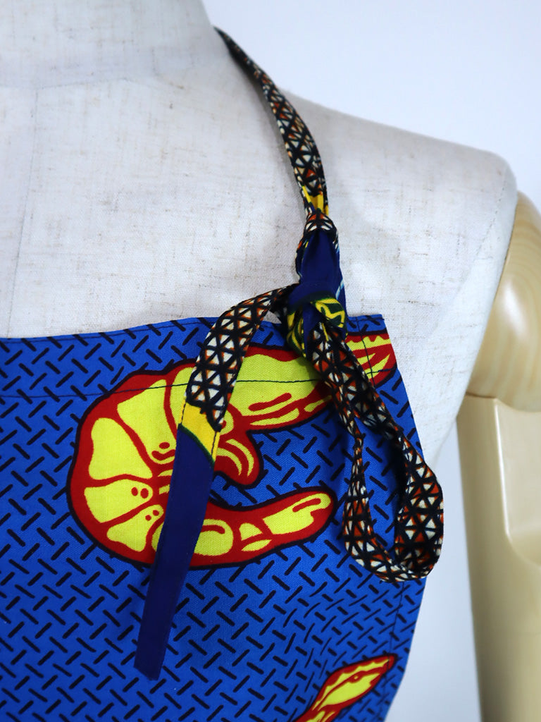 西アフリカのテキスタイルでつくったエプロンです。