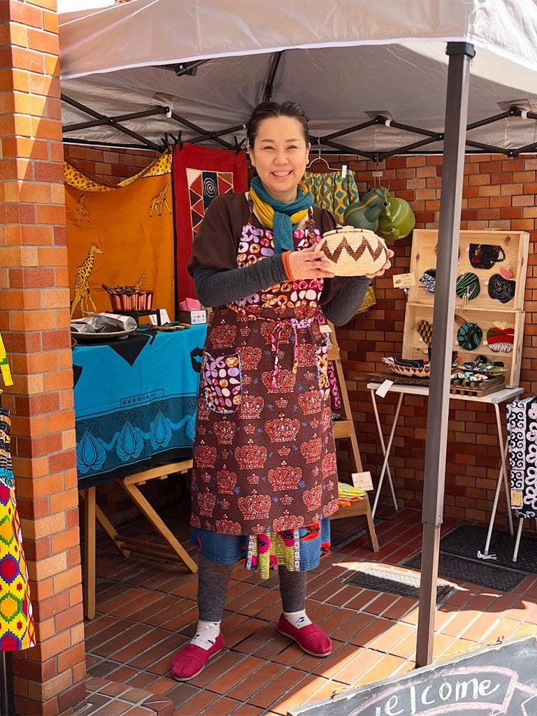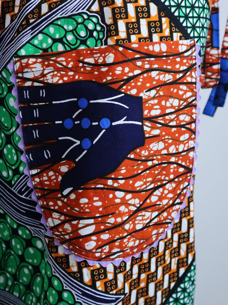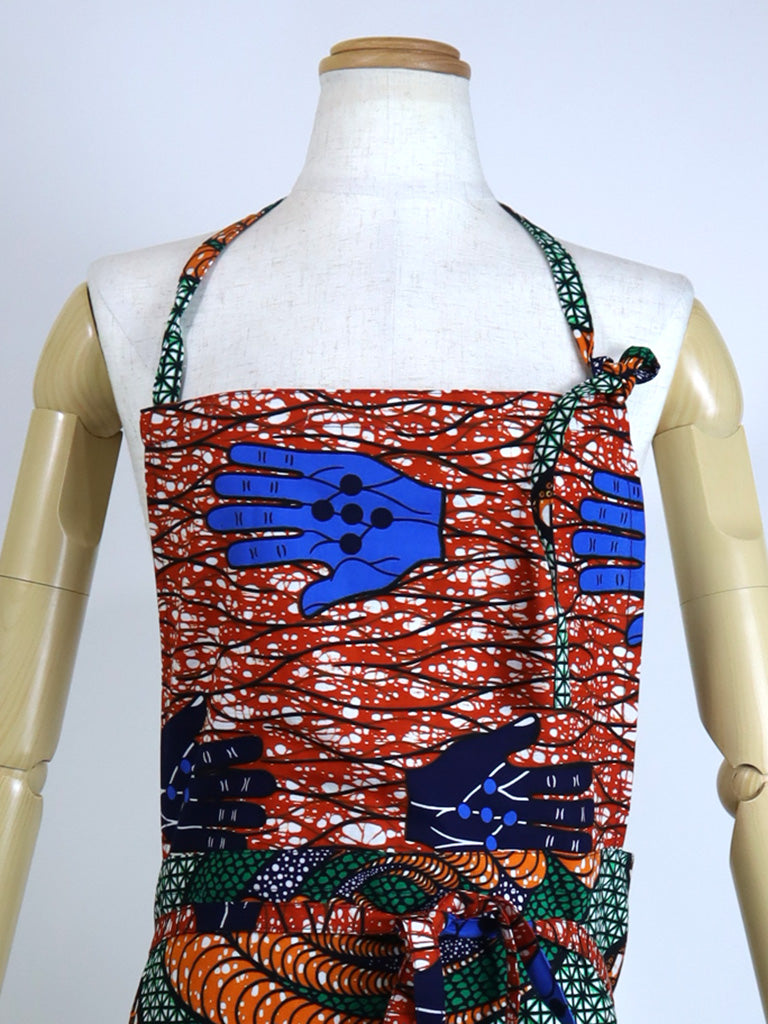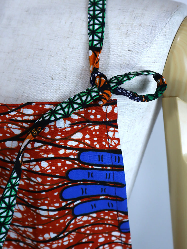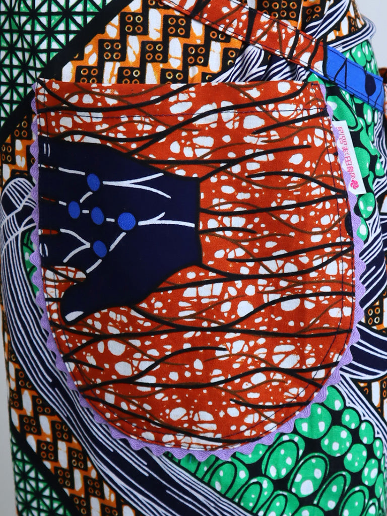 西アフリカのテキスタイルでつくったエプロンです。