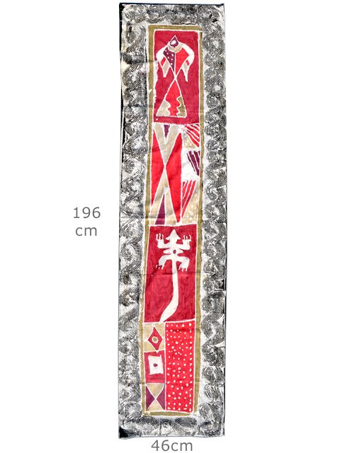 赤っぽいピンク地にトカゲや魚が描かれています。
