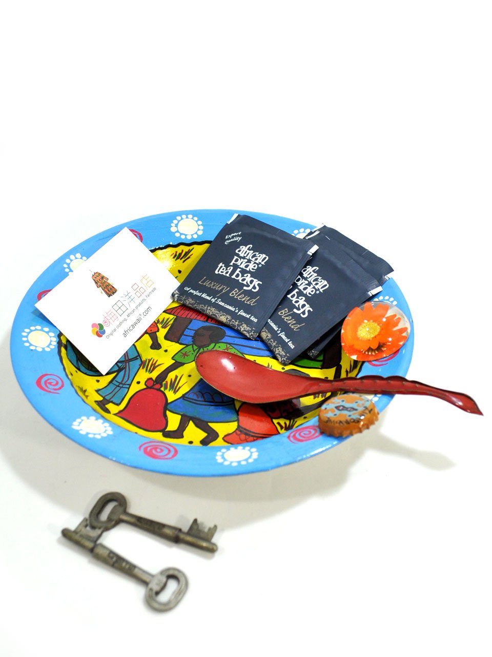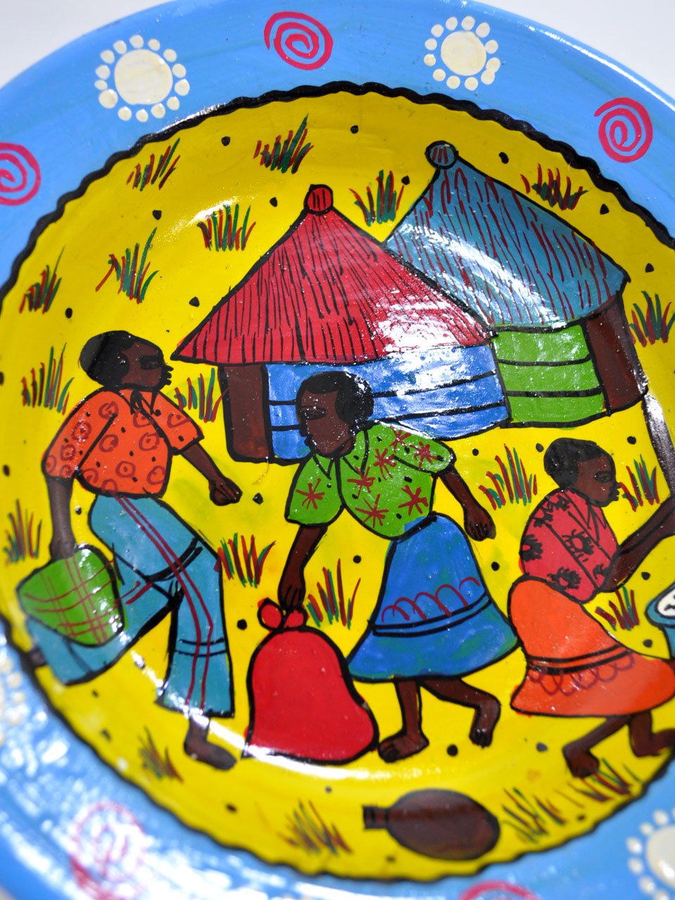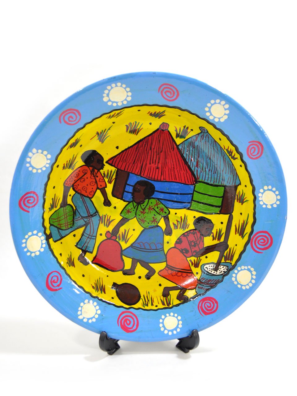 アフリカのヴィレッジ・ライフ・ホーローの手描きプレート B