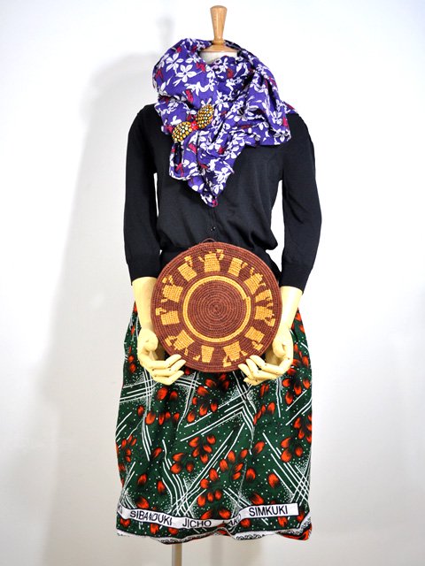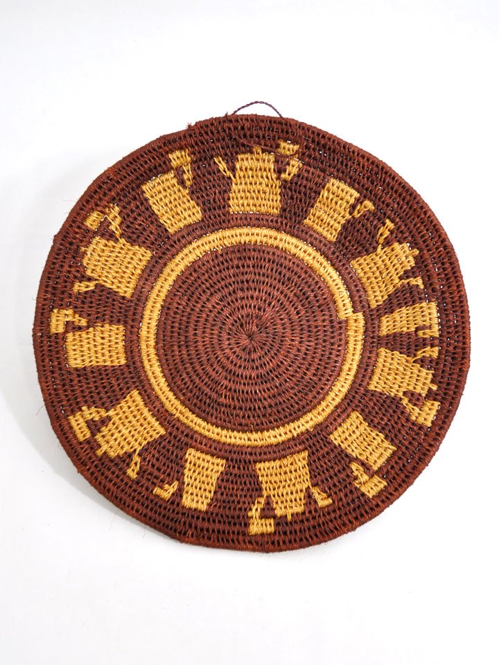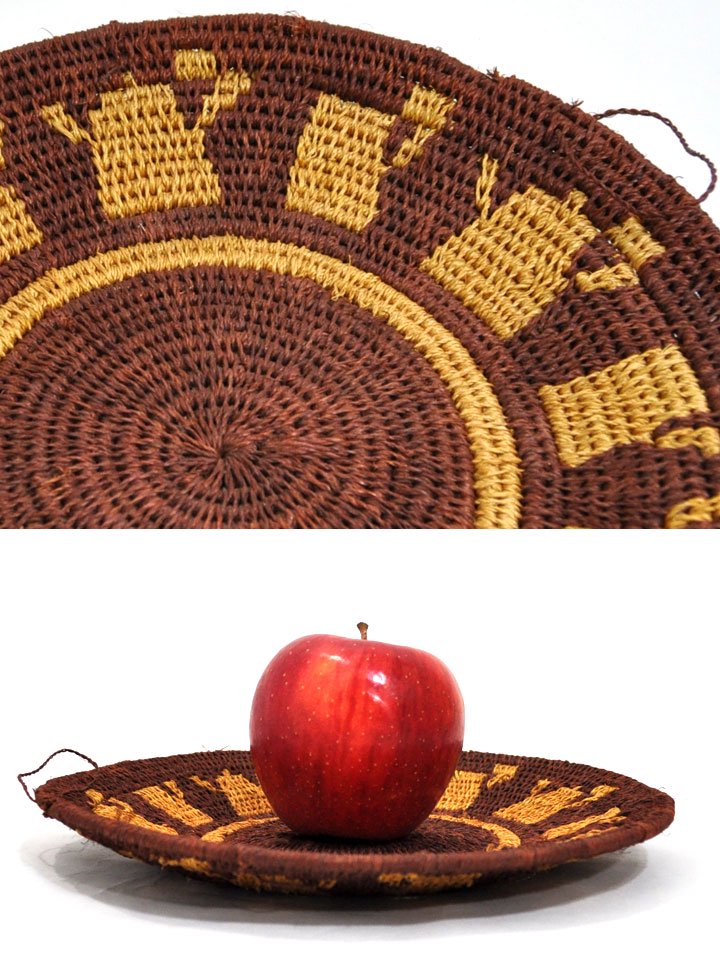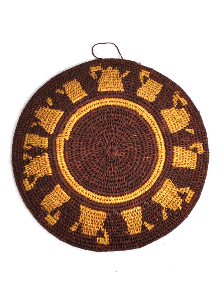 アフリカ(ジンバブエ)のサイザルバスケット/平かごボウル型M・ブラウン&オークル ティーセット