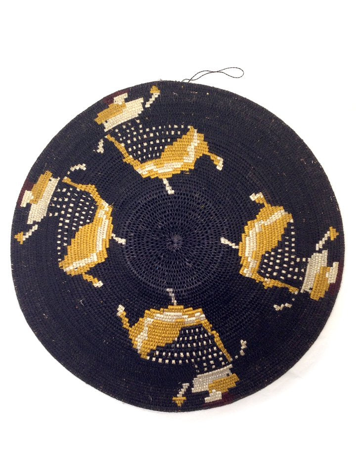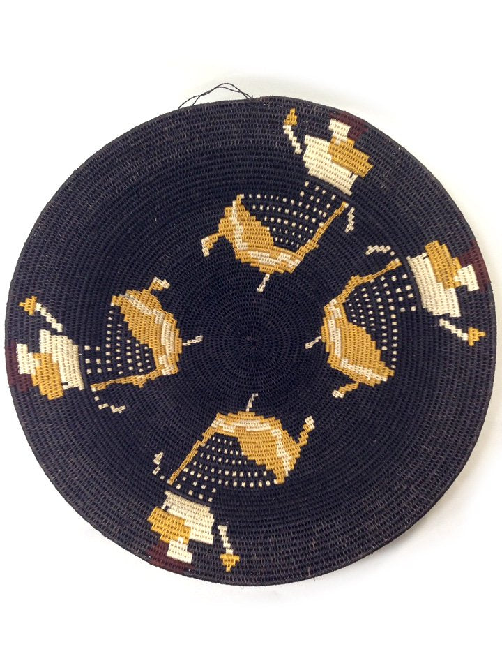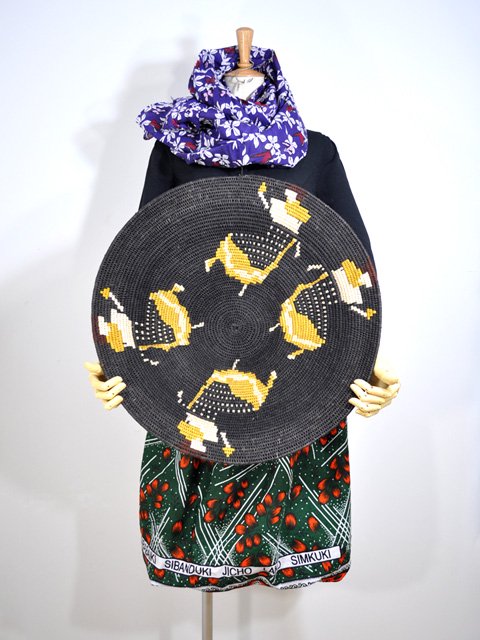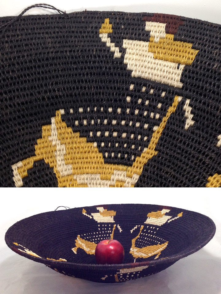 アフリカ(ジンバブエ)のサイザルバスケット/平かごボウル型XL・ダンシングレディ
