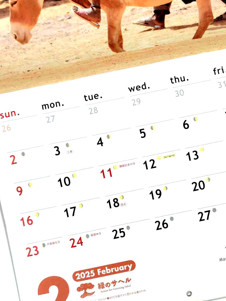 NGO団体「緑のサヘル」のカレンダー、2025年版も梅田洋品店にて取り扱っています。