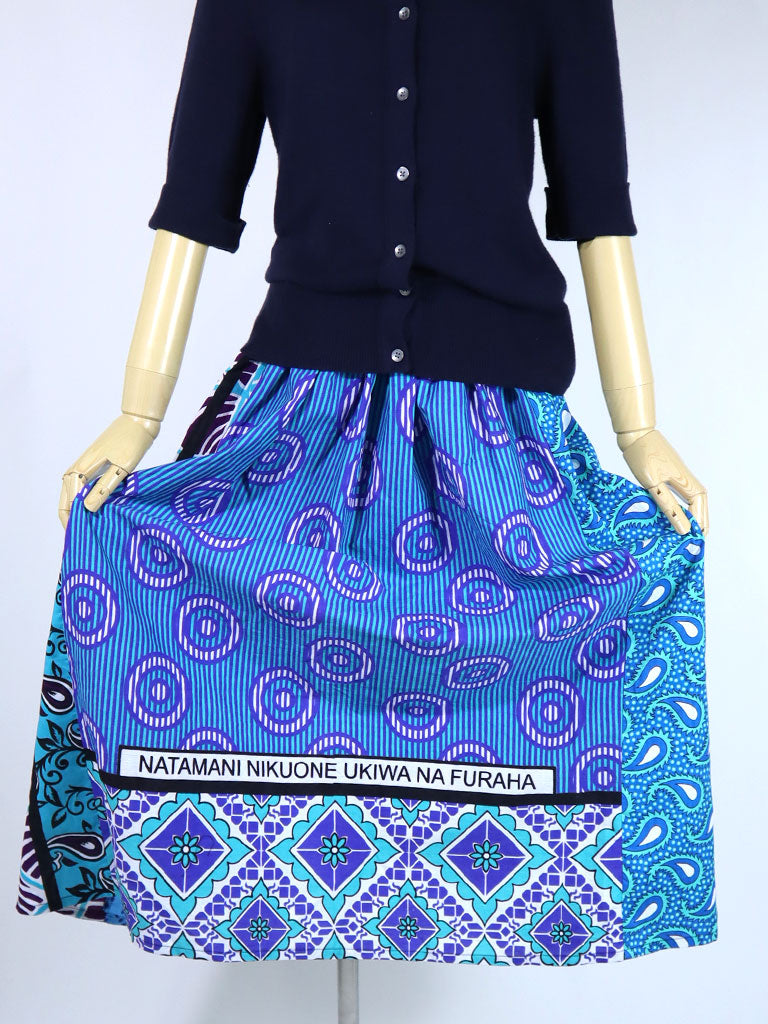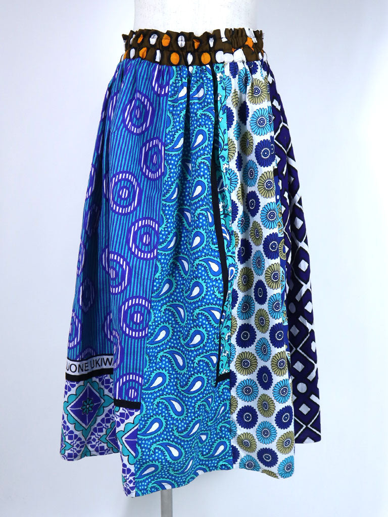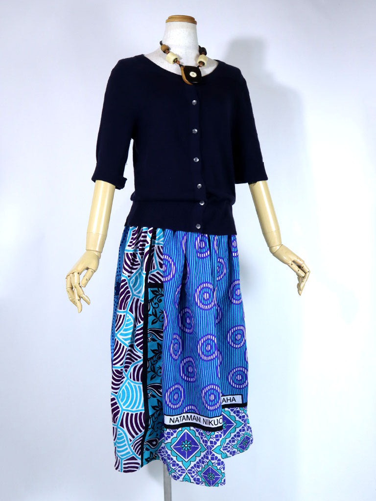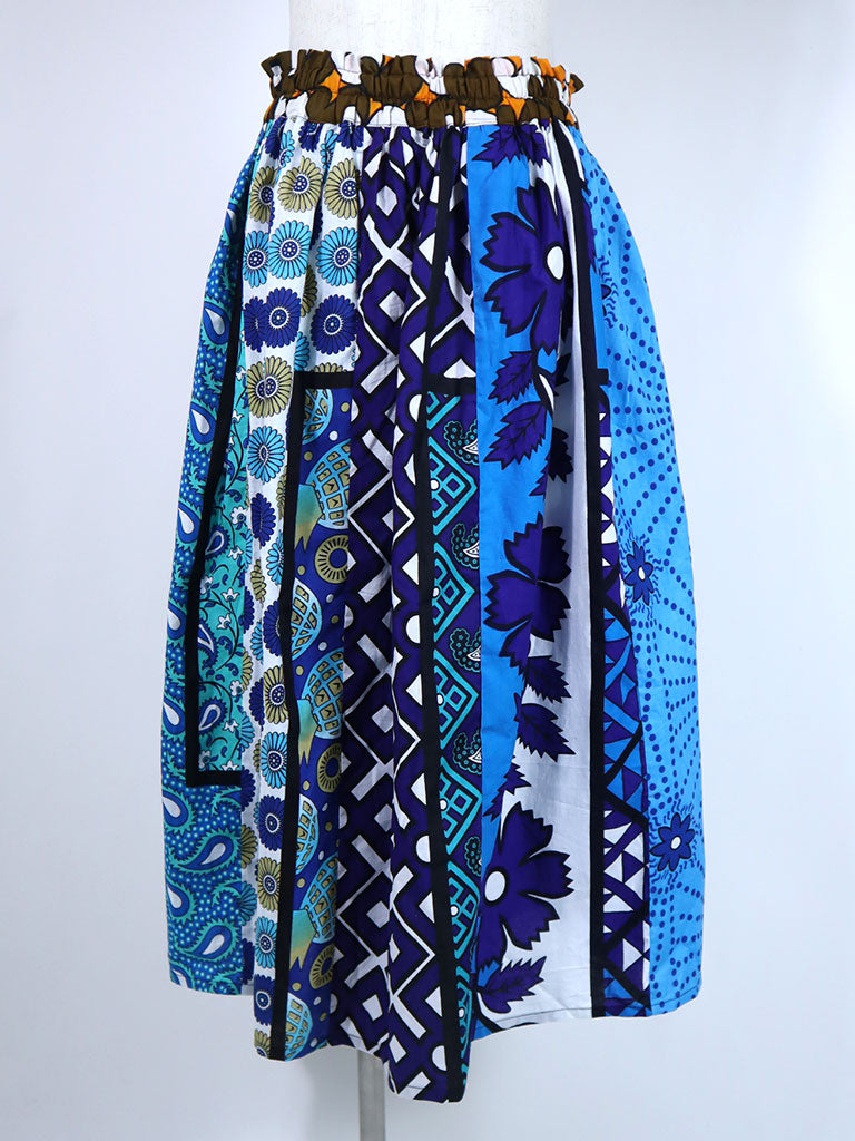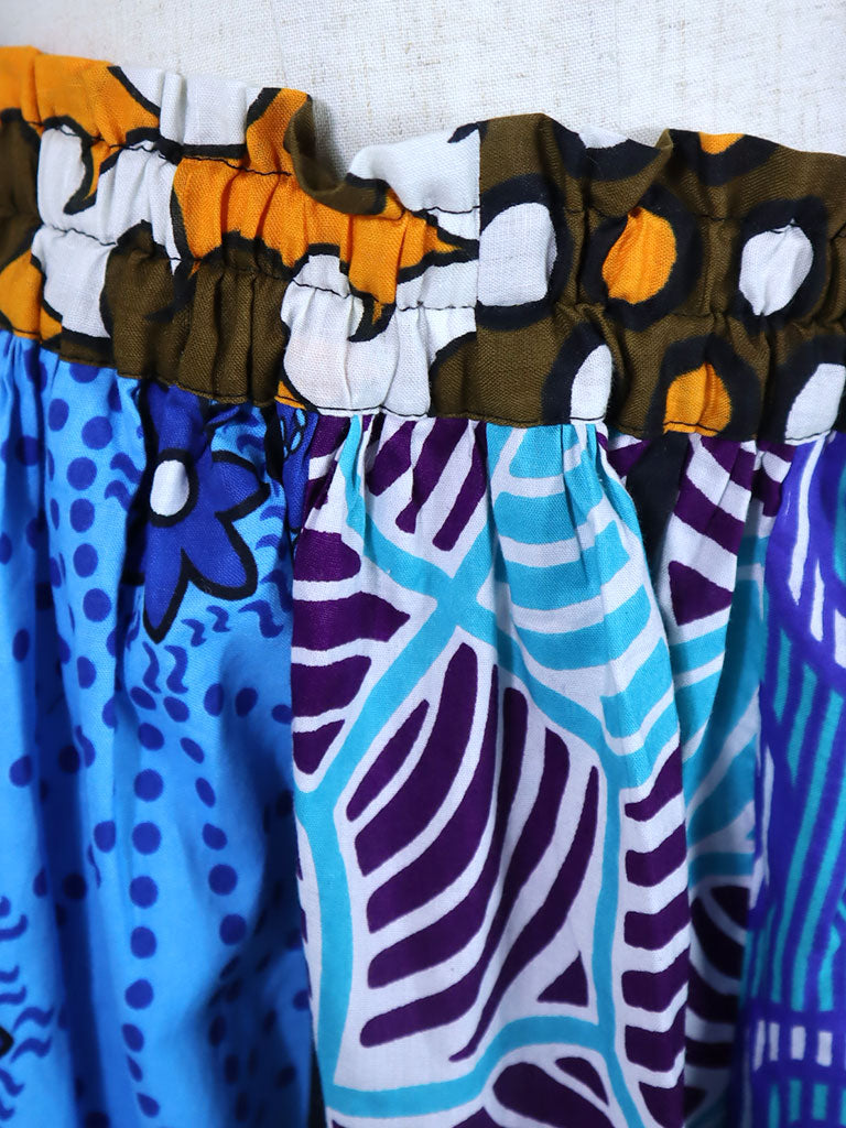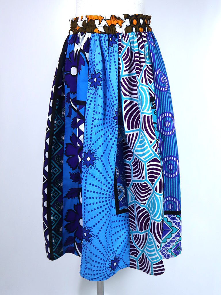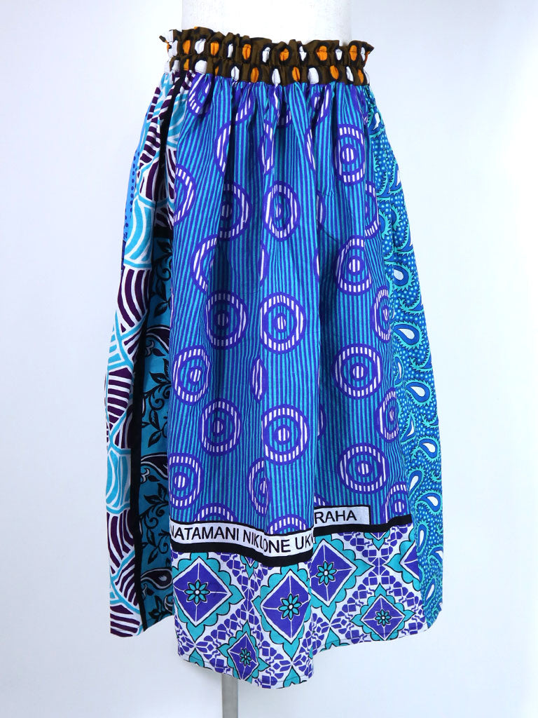 カンガのパッチワークロングスカート・ブルー×パープルサークル