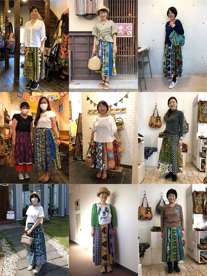 7枚の柄違いのカンガ(東アフリカの布)を贅沢に使った一点もののロングスカートです。