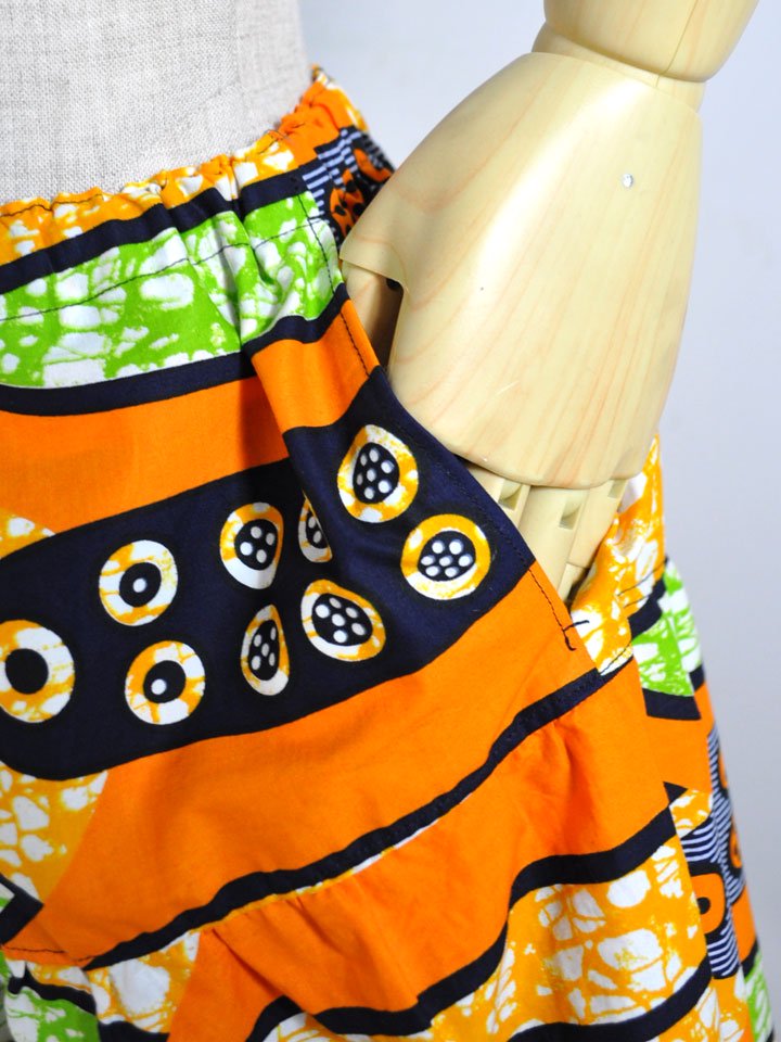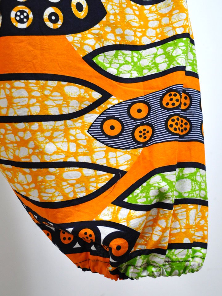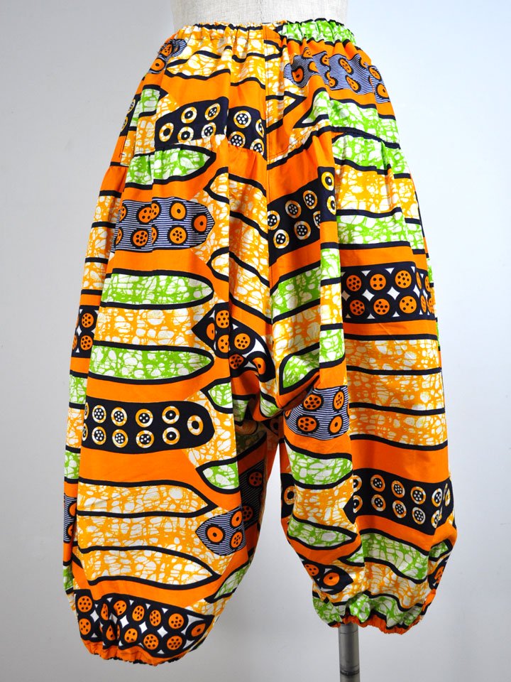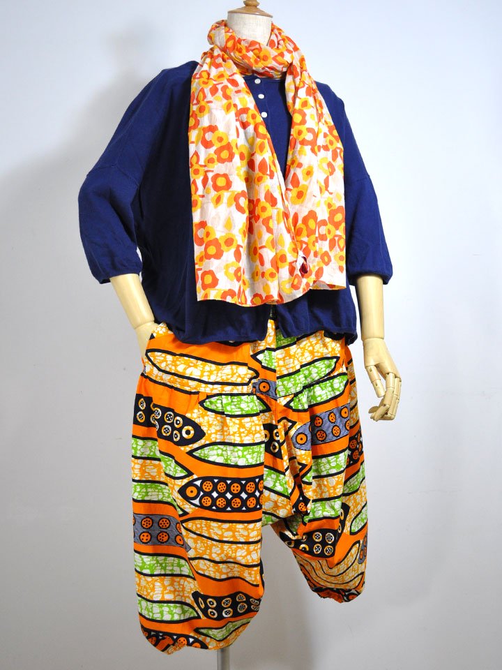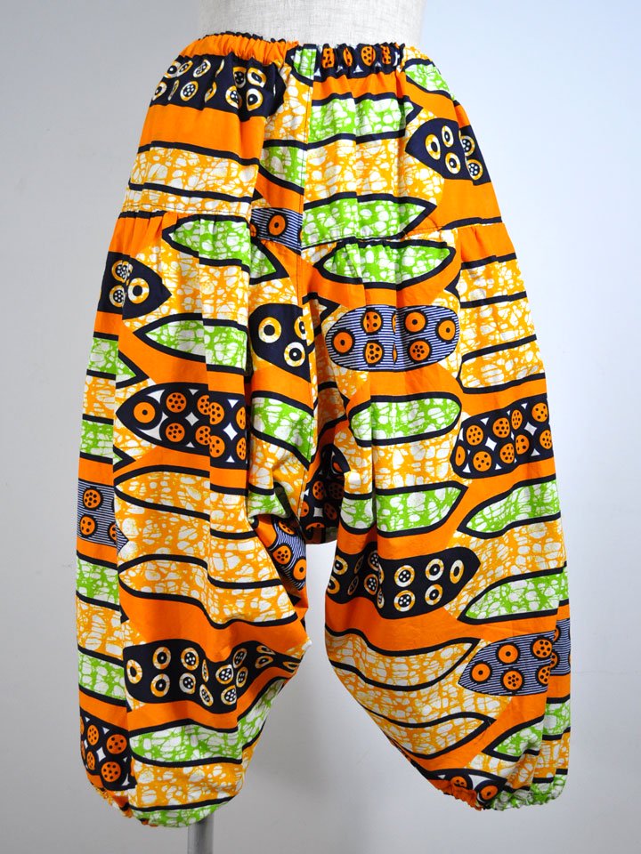 アフリカンプリントでつくった、ショート丈のサルエルパンツです。