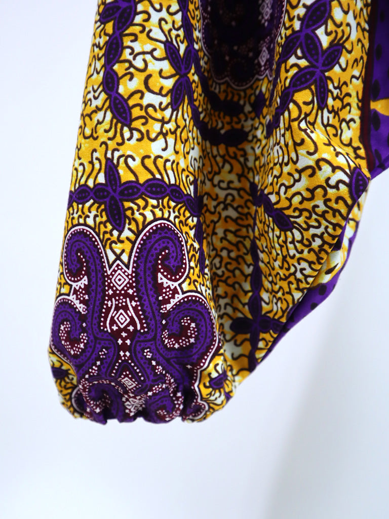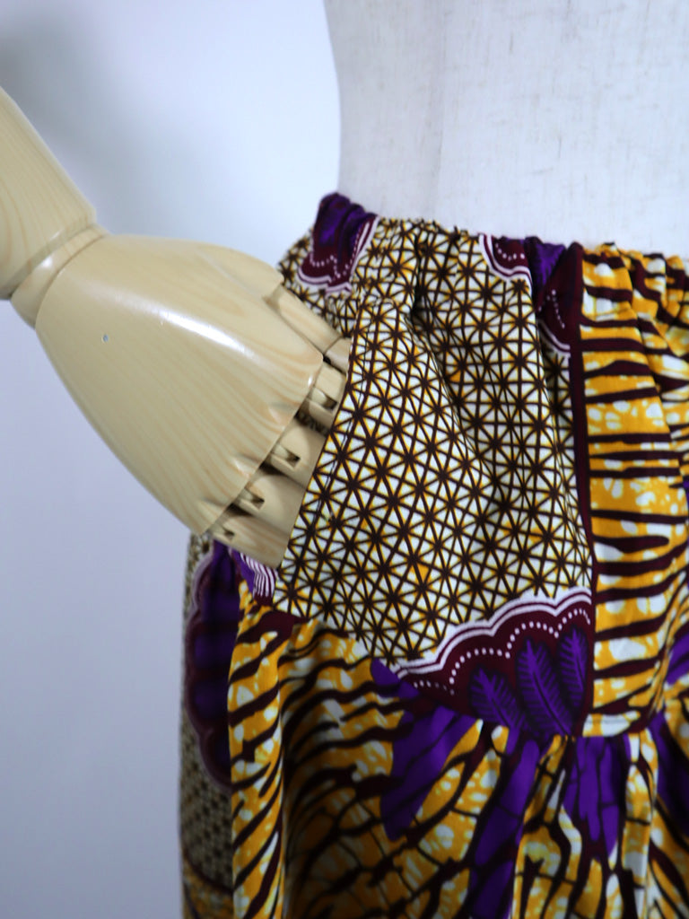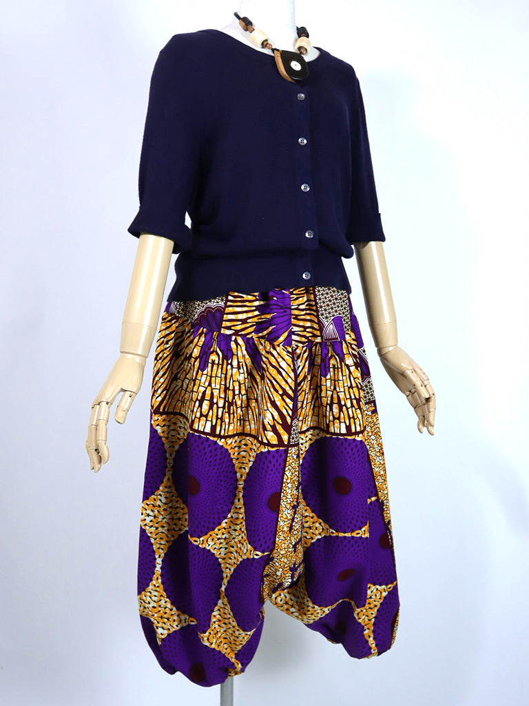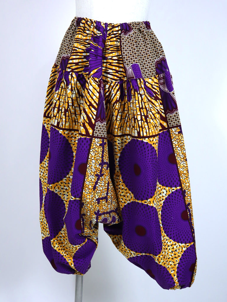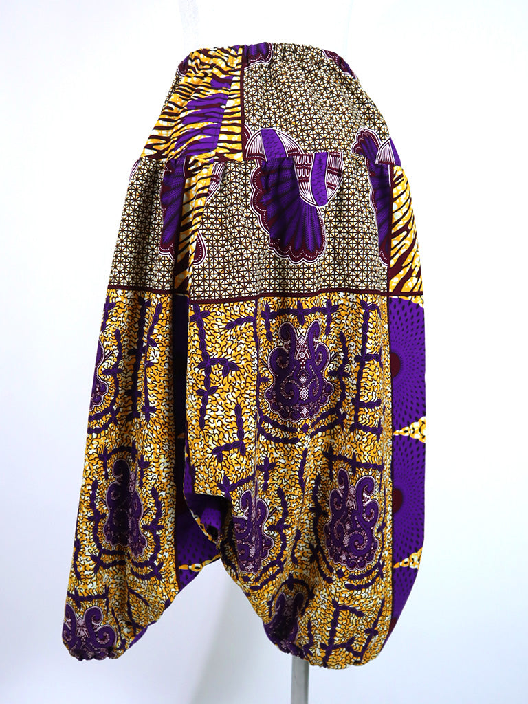 アフリカンプリントでつくった、ロング丈のサルエルパンツです。
