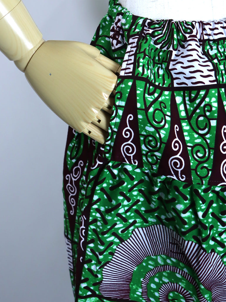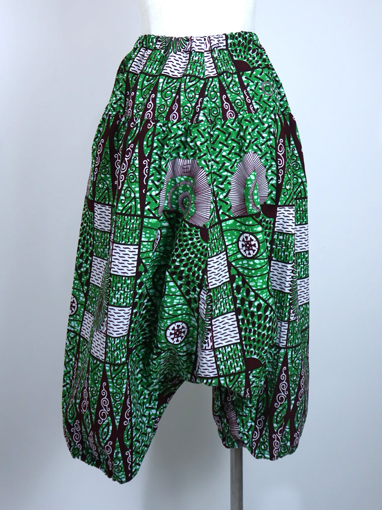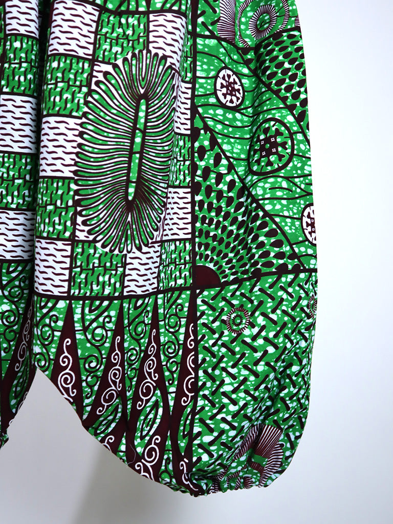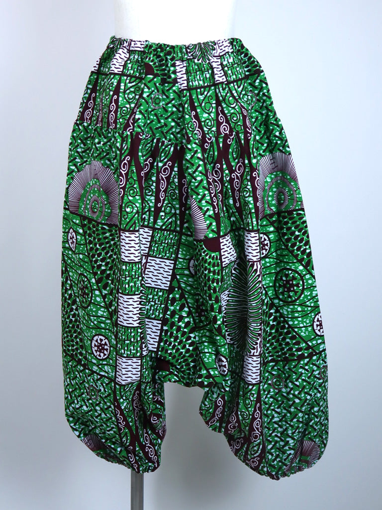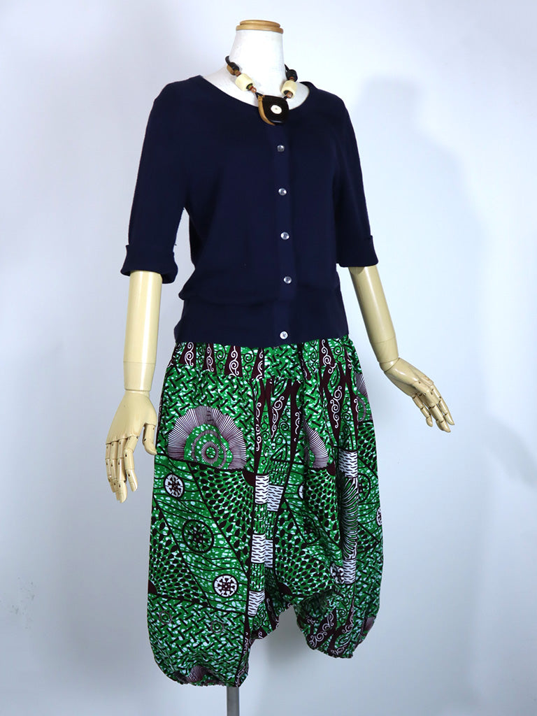 アフリカンプリントでつくった、ロング丈のサルエルパンツです。