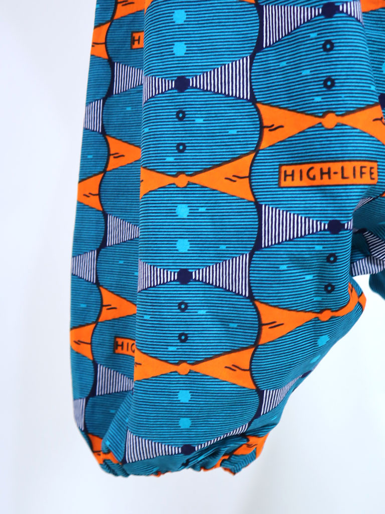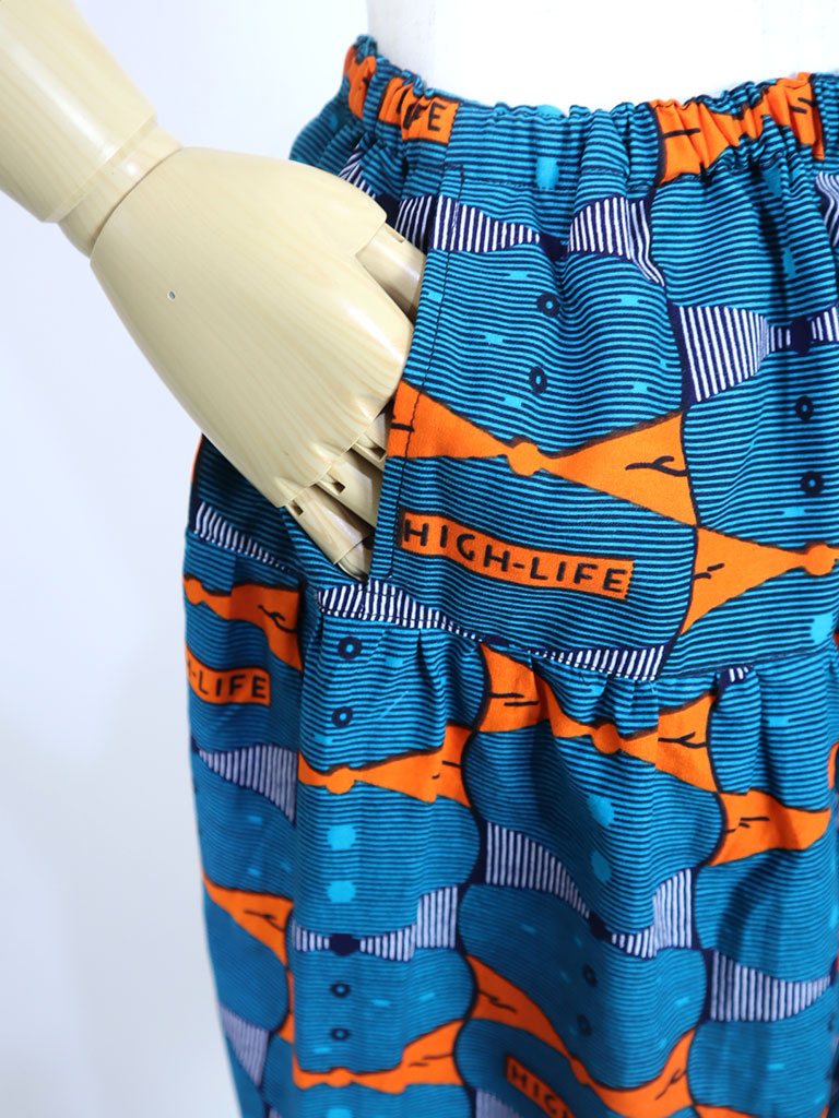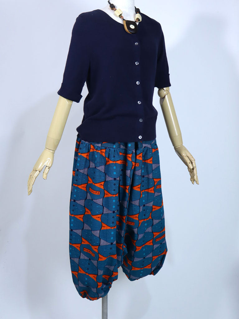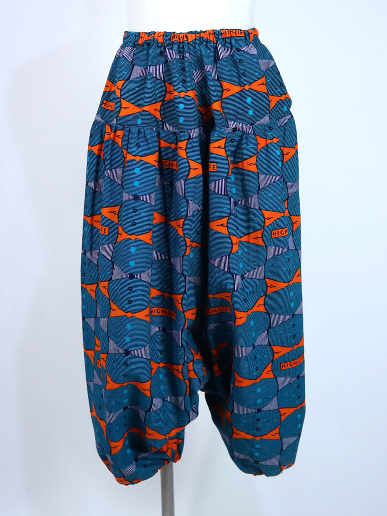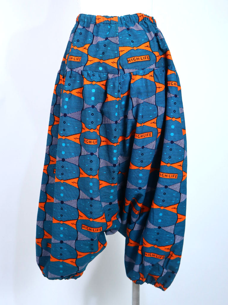 アフリカンプリントでつくった、ロング丈のサルエルパンツです。