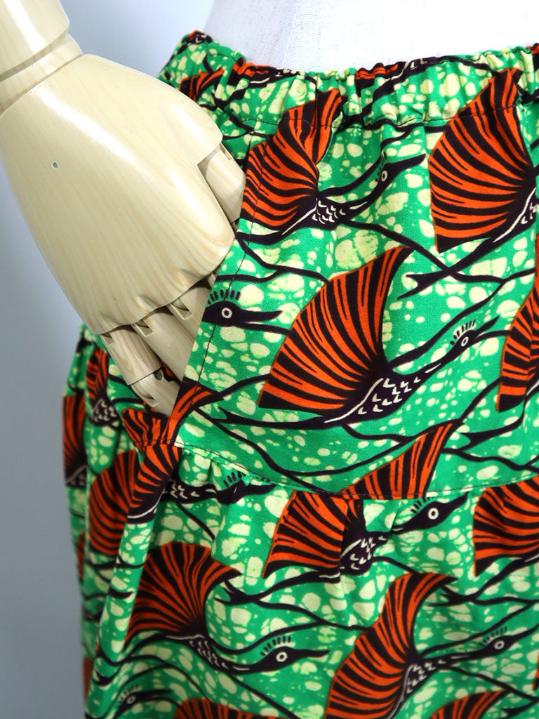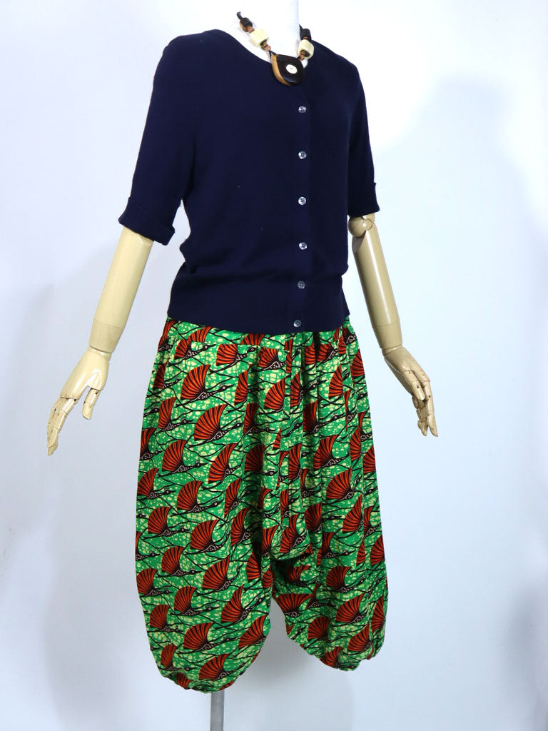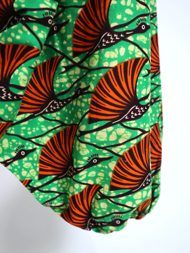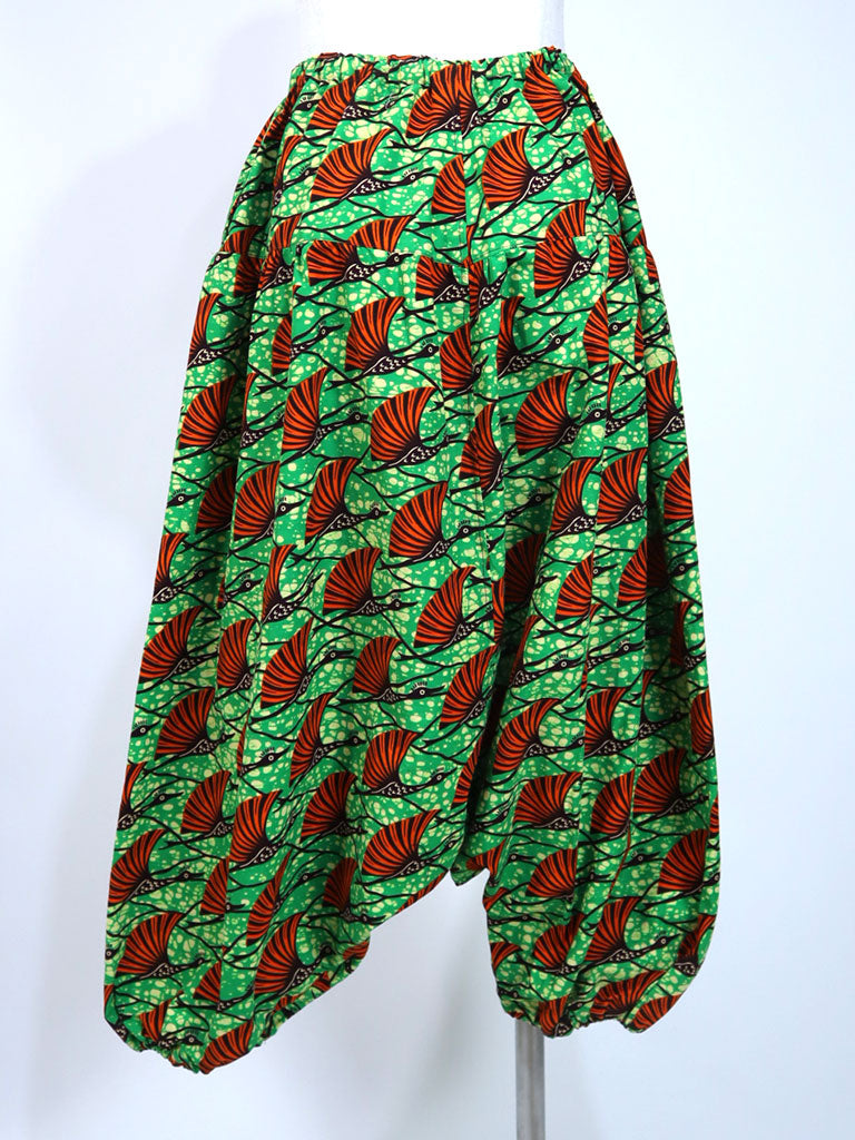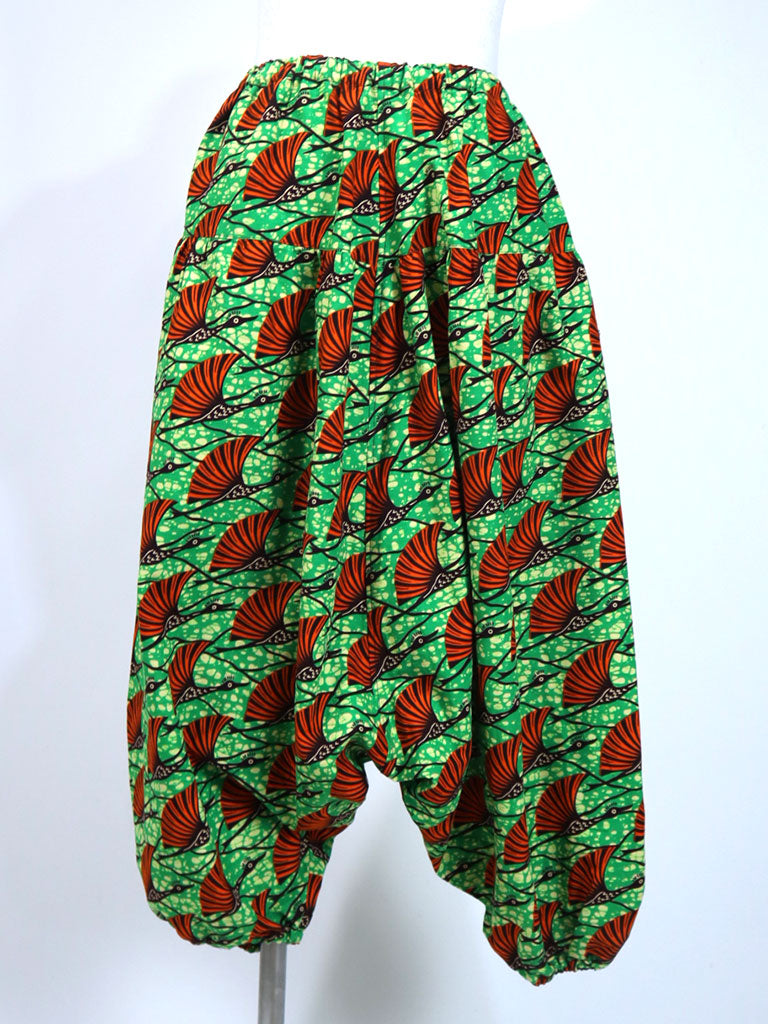 ポケット付きサルエルパンツ・ロング/グリーン×オレンジバード