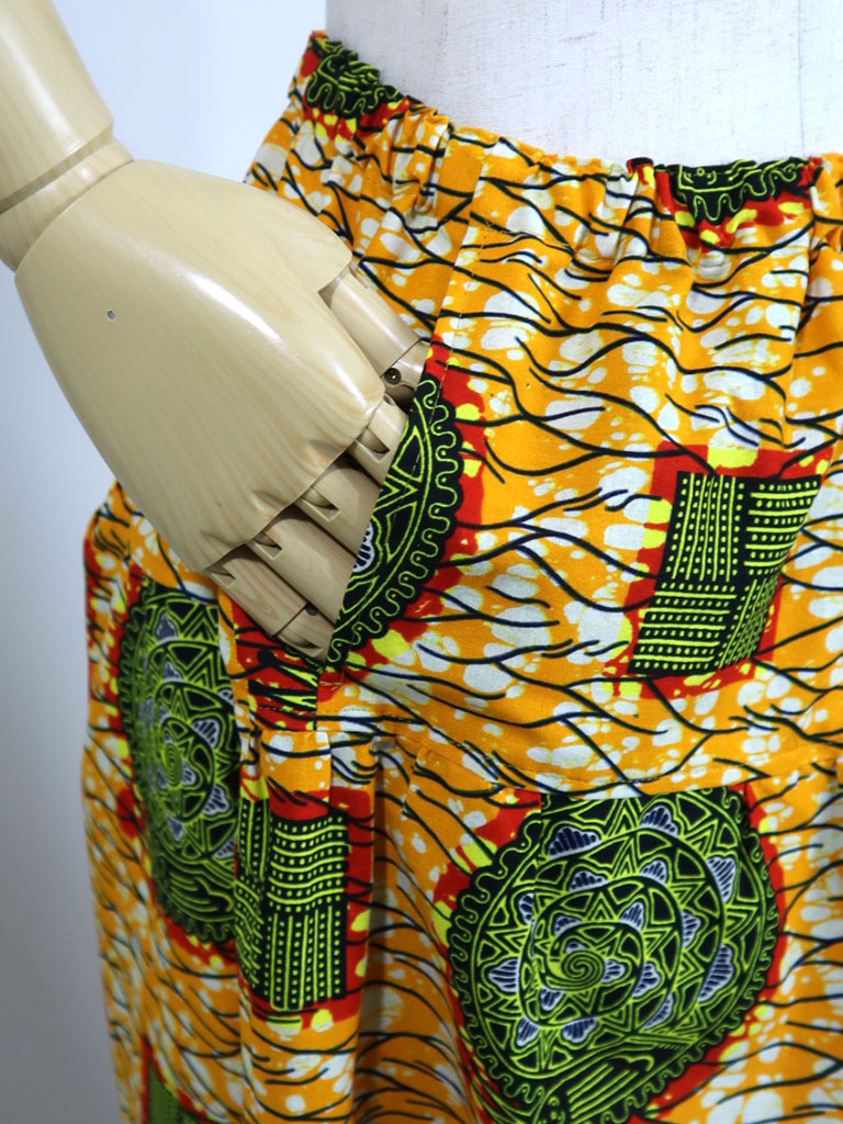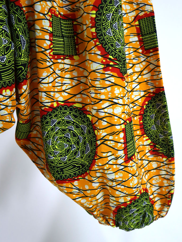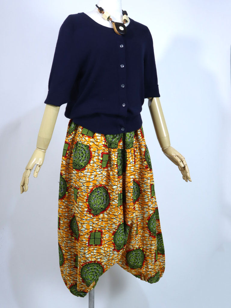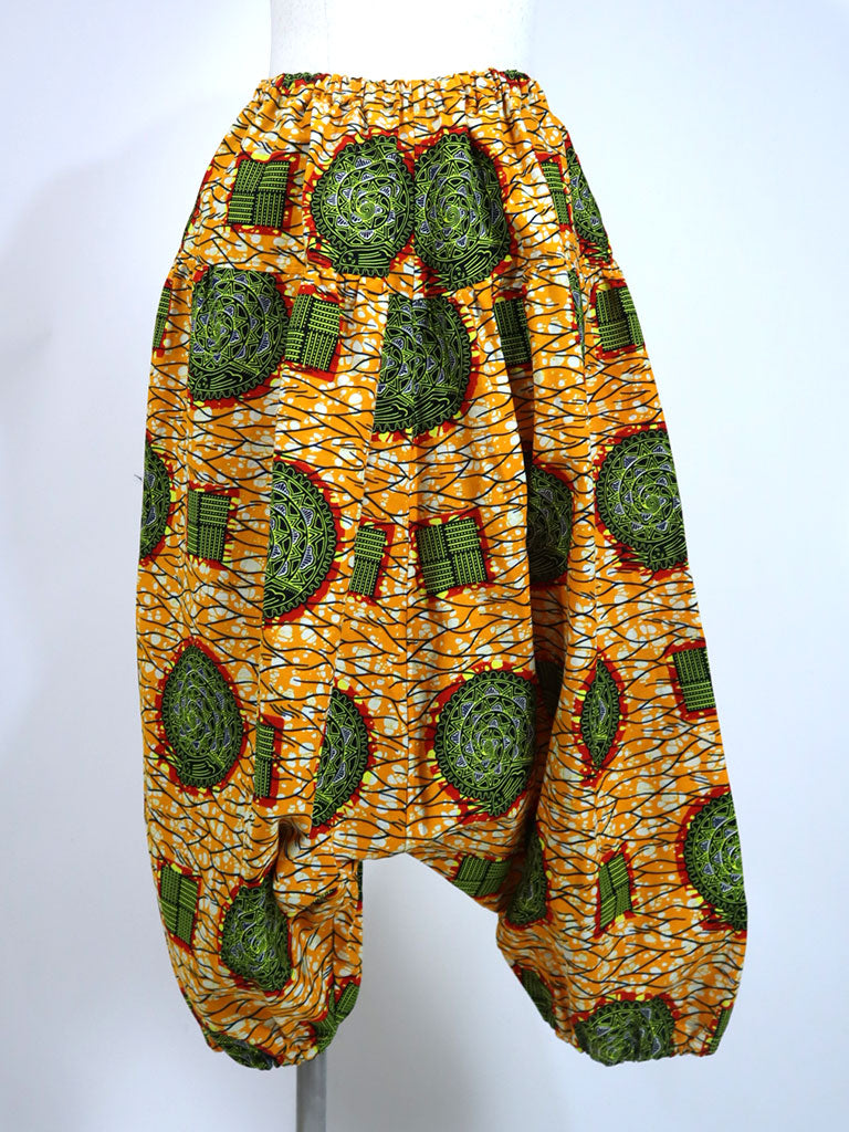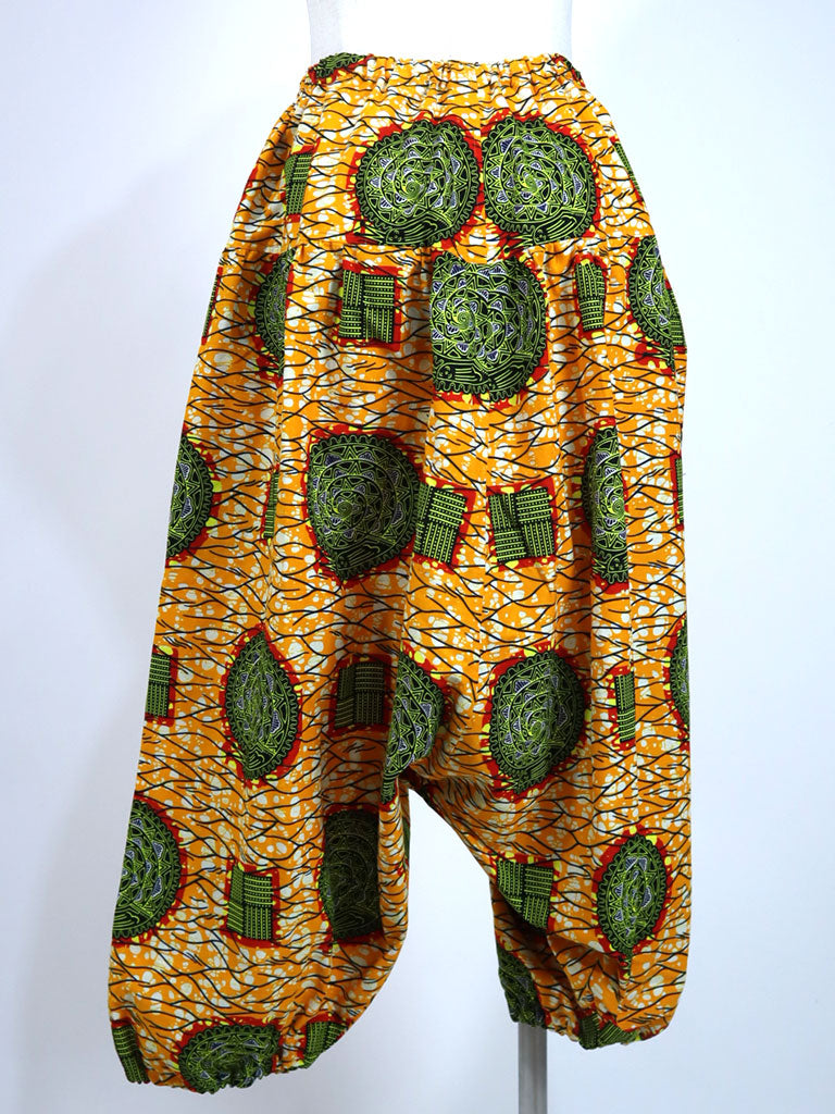 アフリカンプリントでつくった、ロング丈のサルエルパンツです。