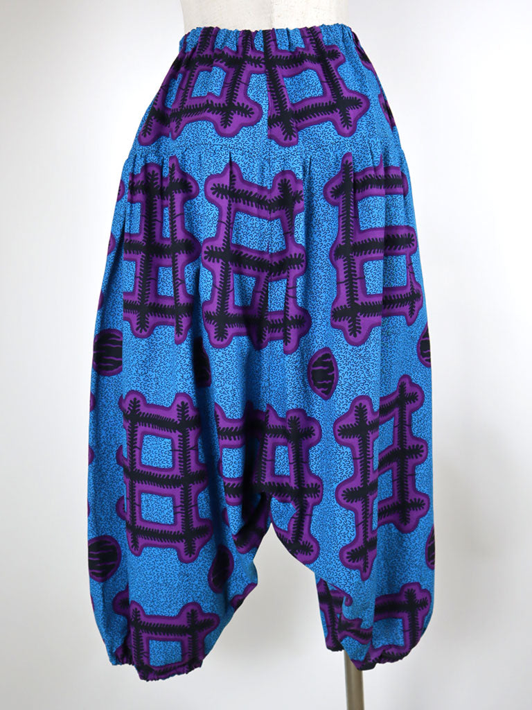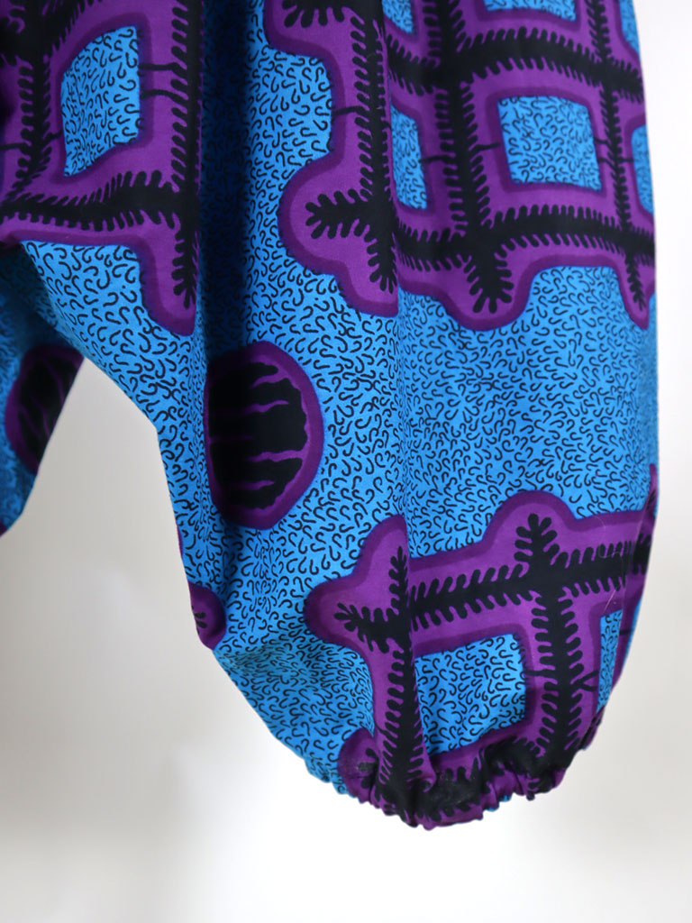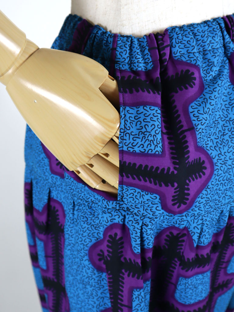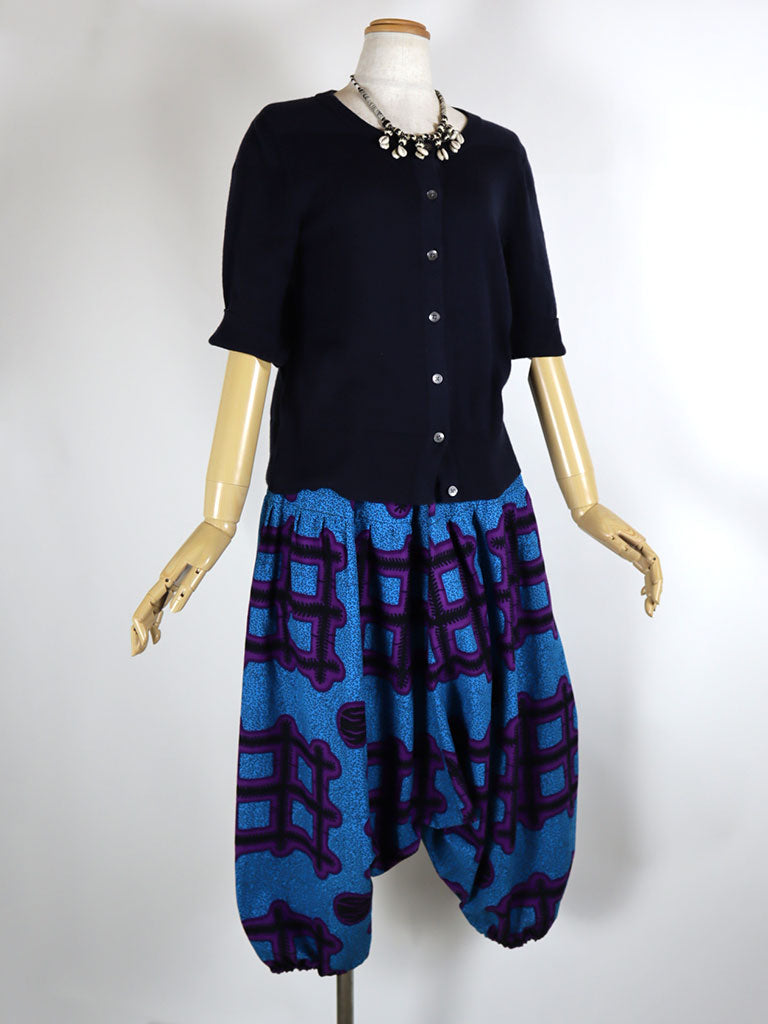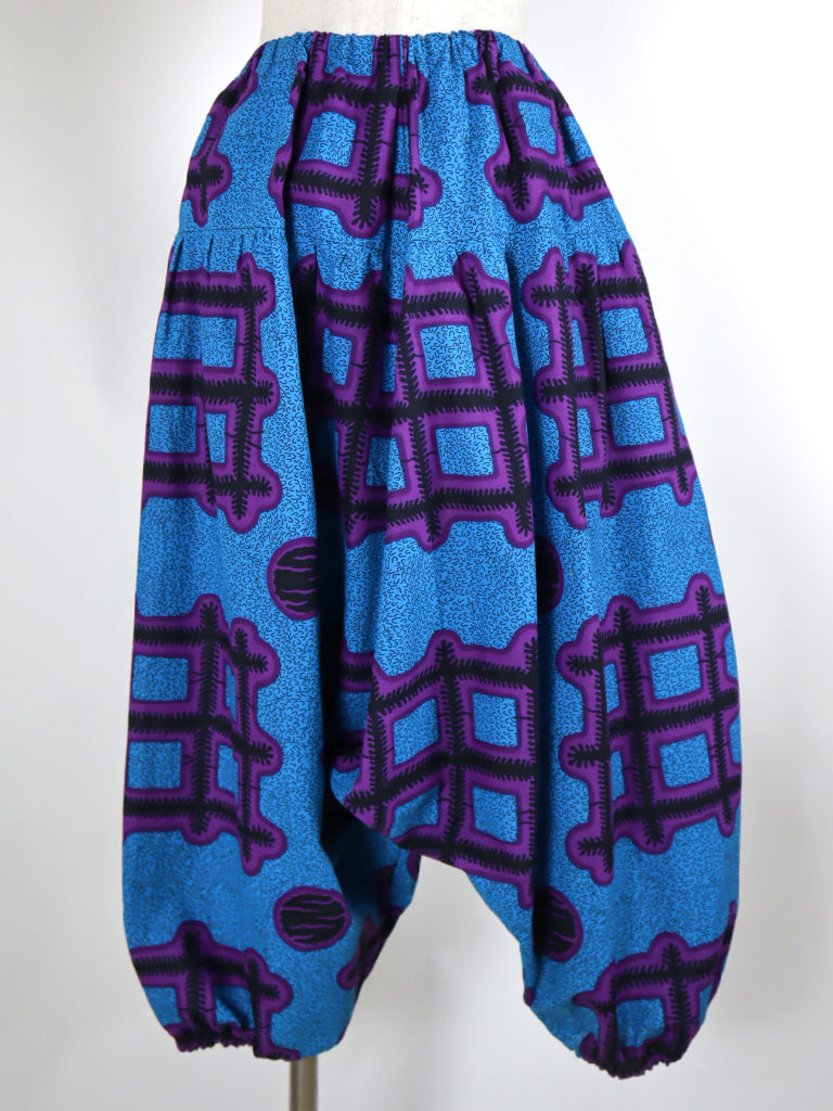 アフリカンプリントでつくった、ロング丈のサルエルパンツです。