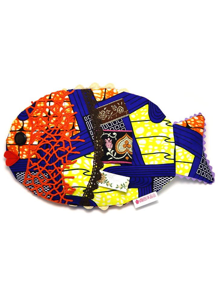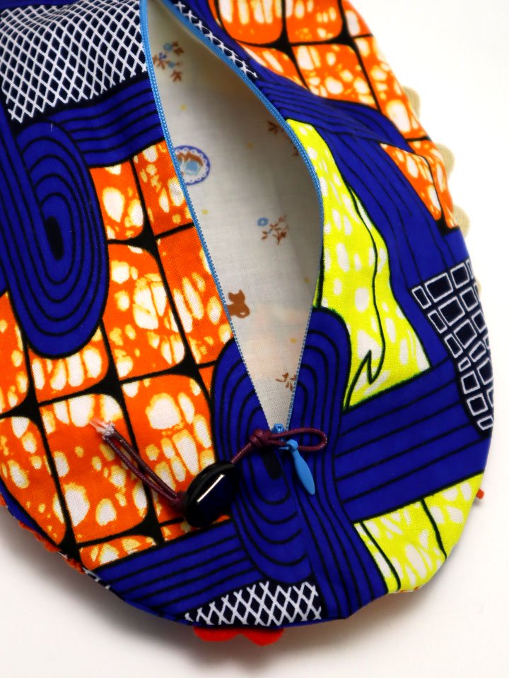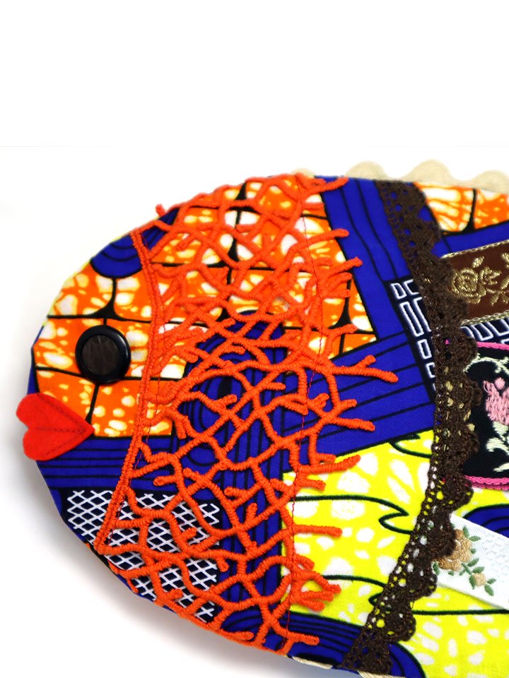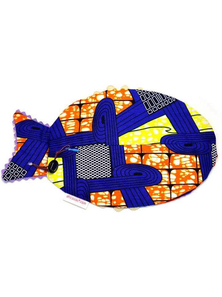 アフリカンプリントのお魚ポーチ・イエロー×ブルー