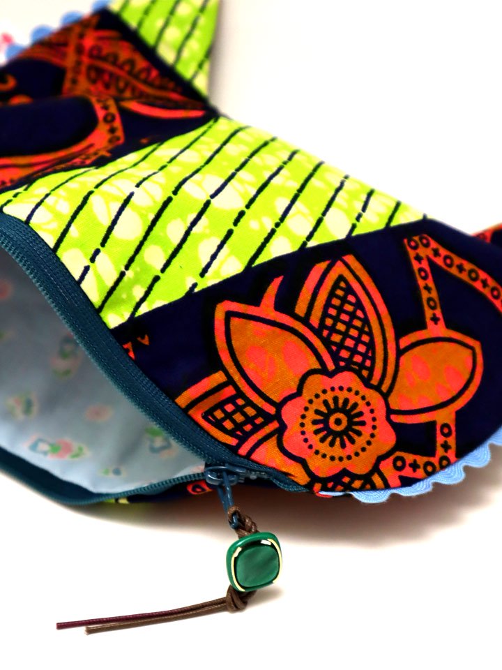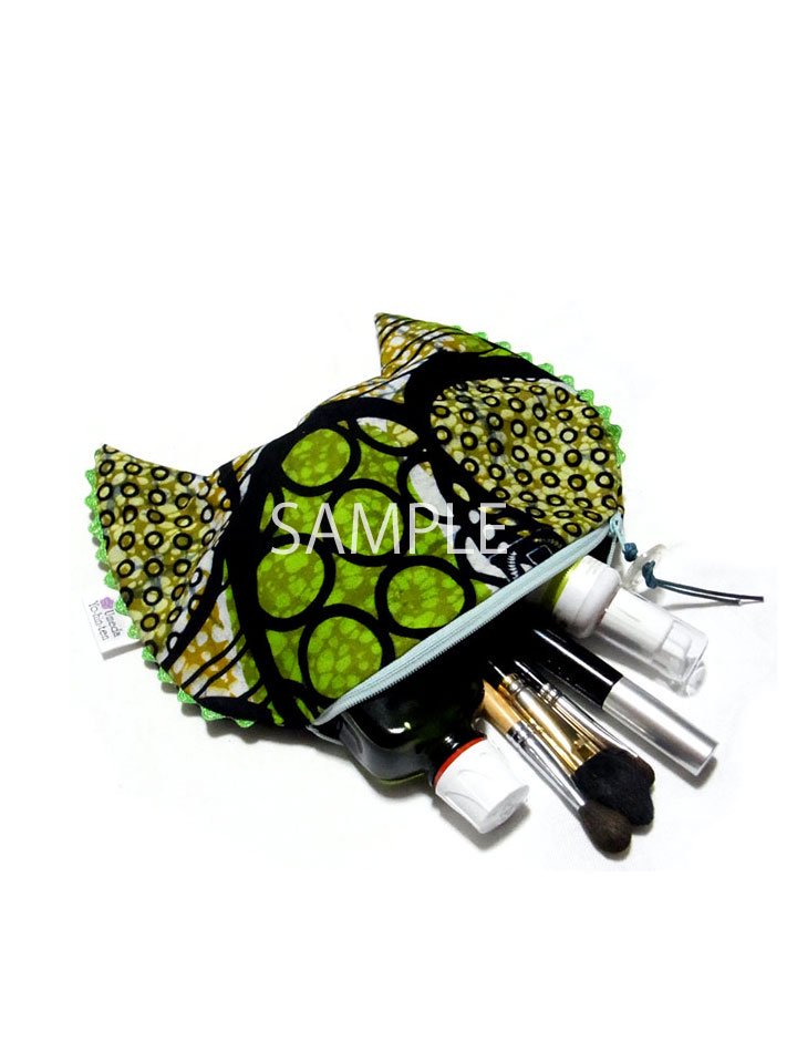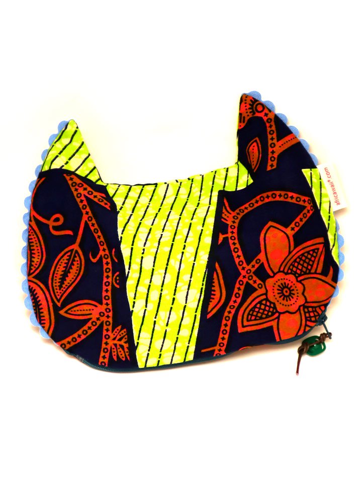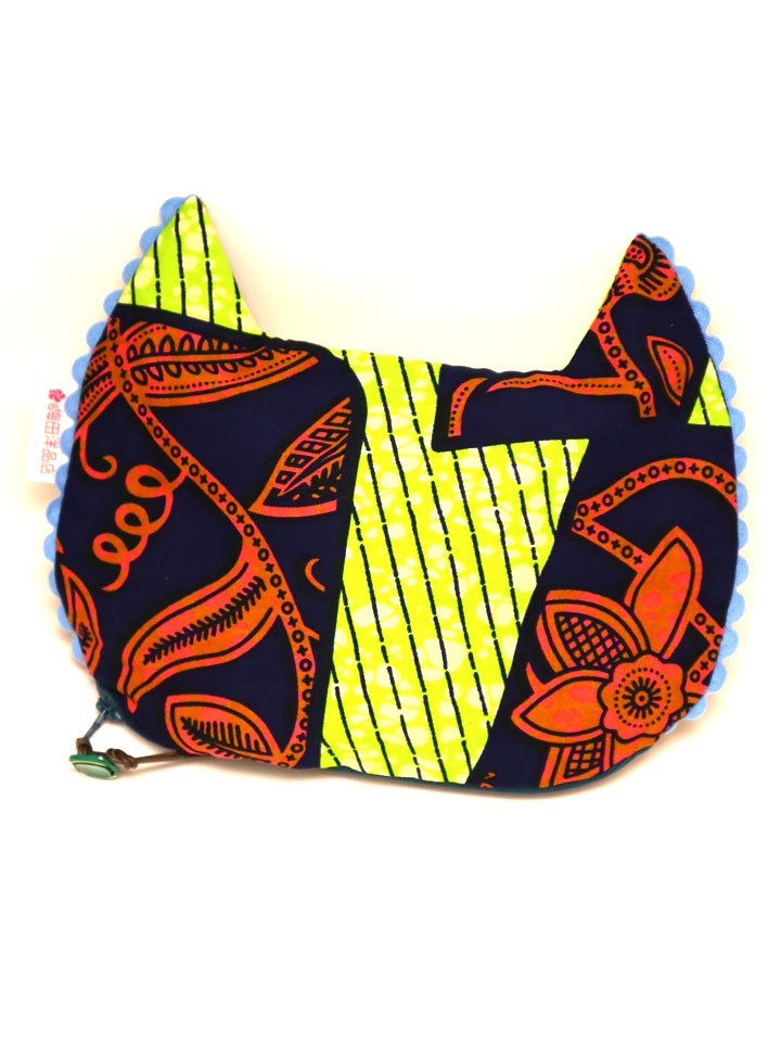 西アフリカのプリント布で作った猫の顔の形のポーチです。