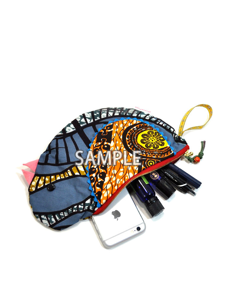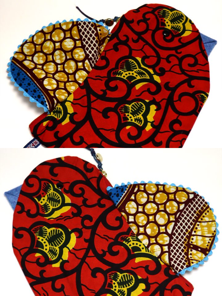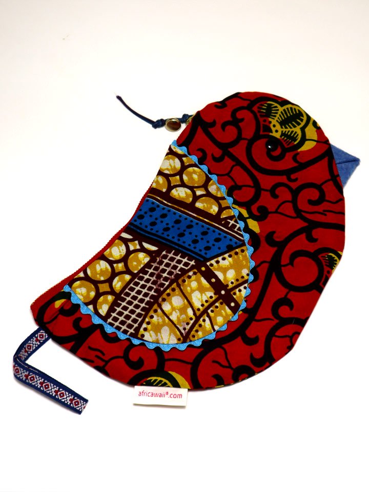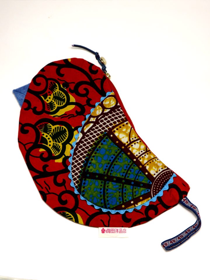 西アフリカのプリント布で作った鳥の形のポーチです。
