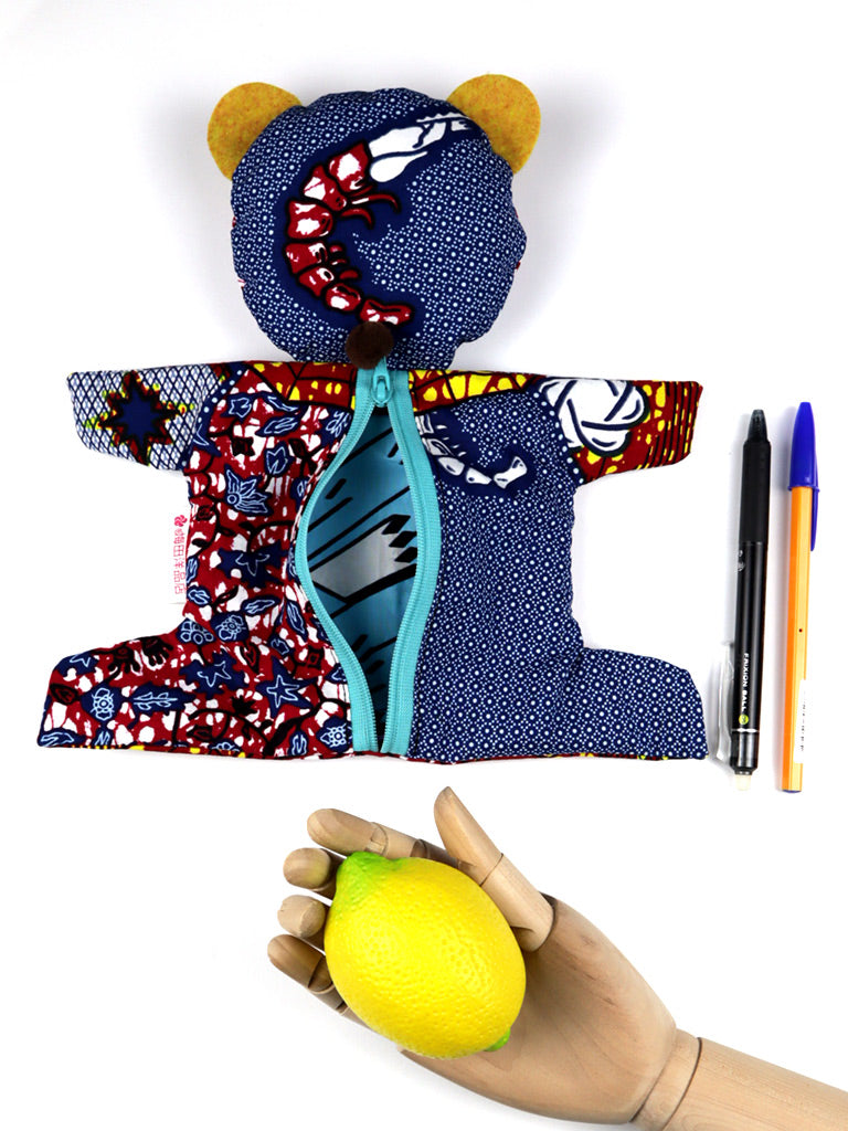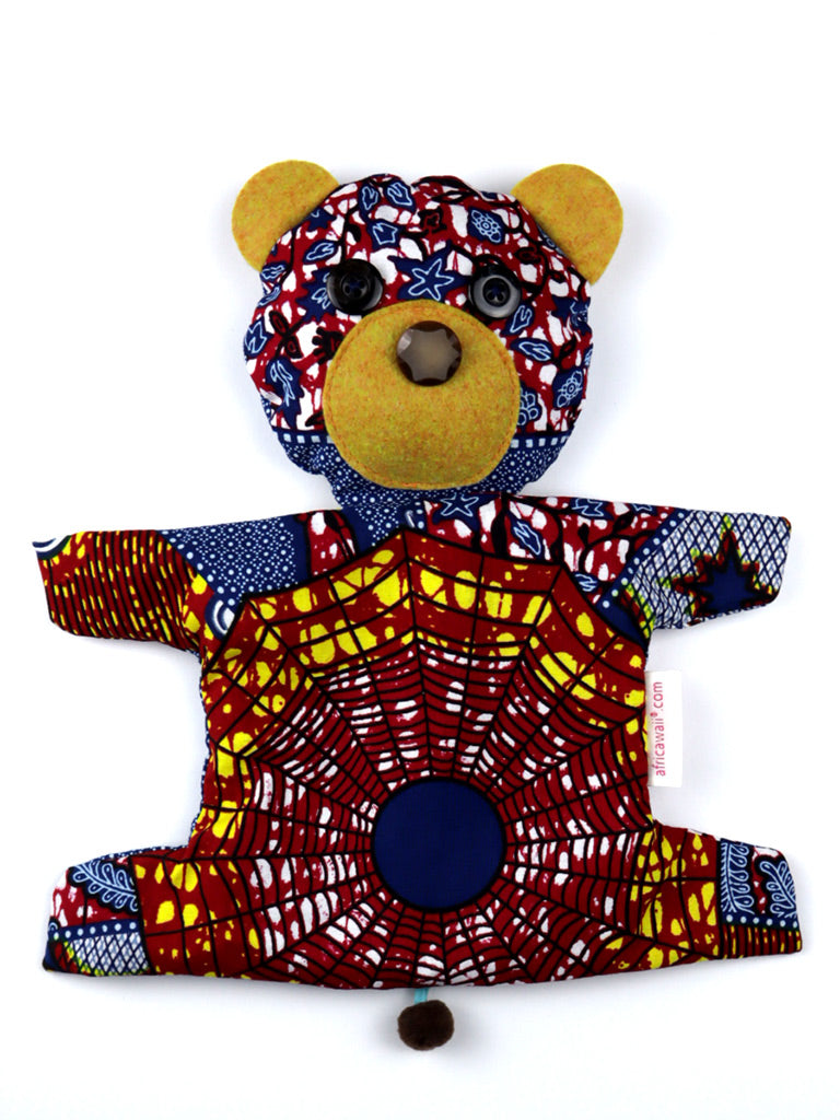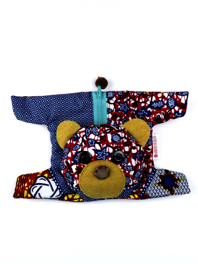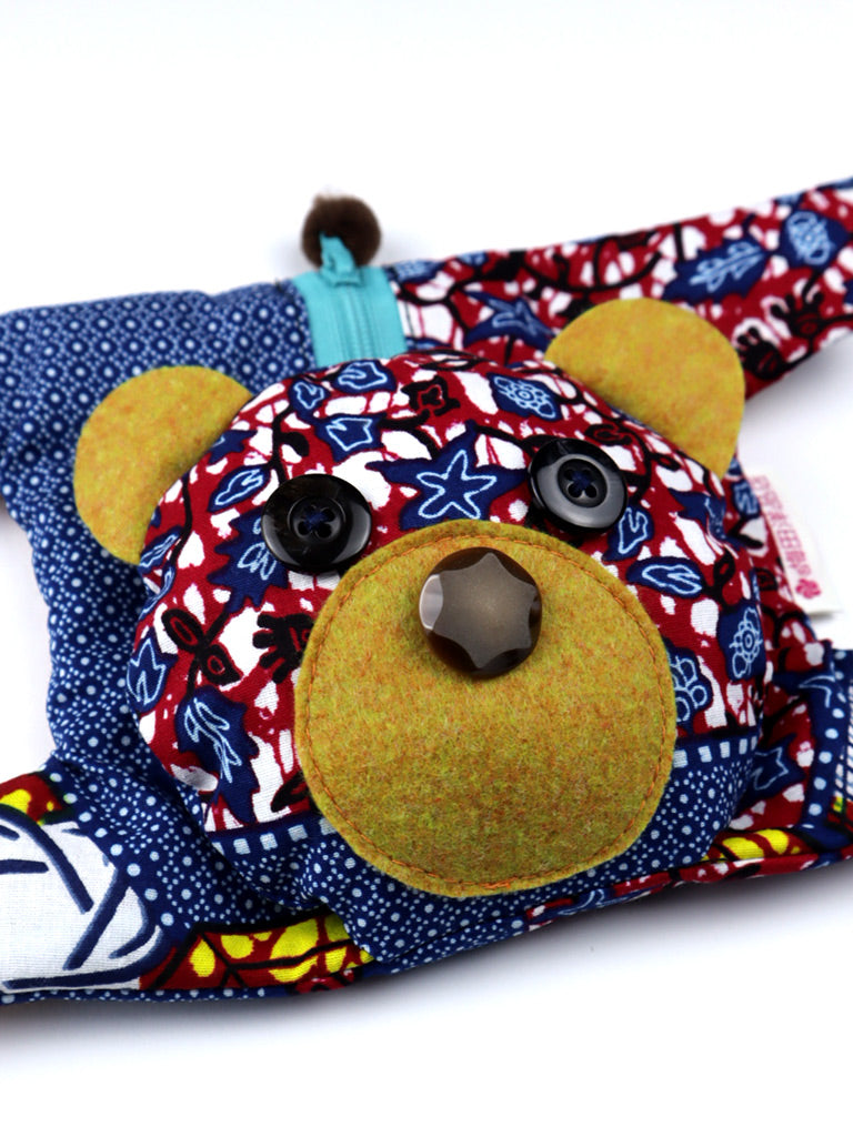 西アフリカのプリント布で作った熊のポーチです。