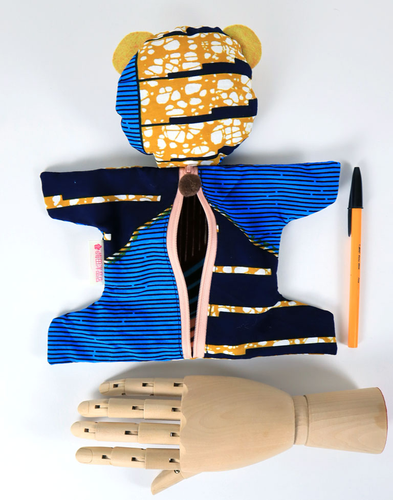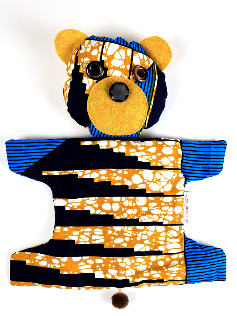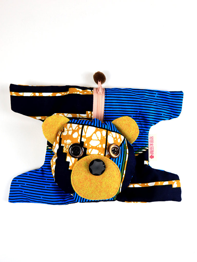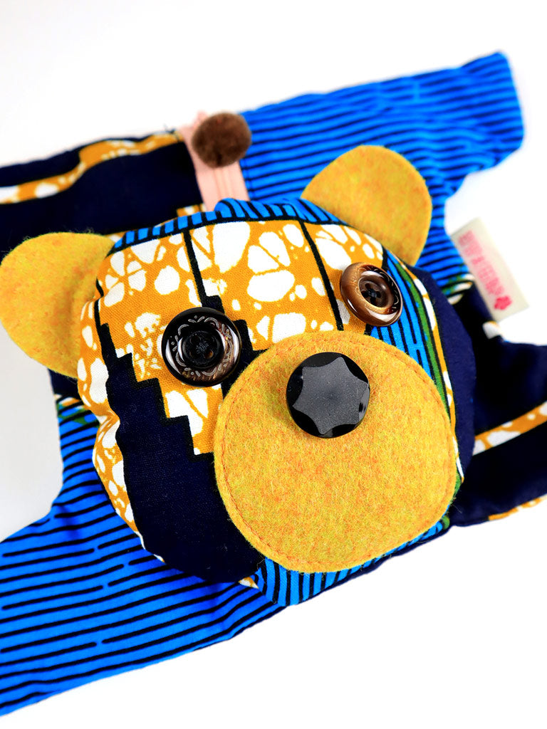 アフリカンプリントのくまポーチ・ブルー×オレンジ