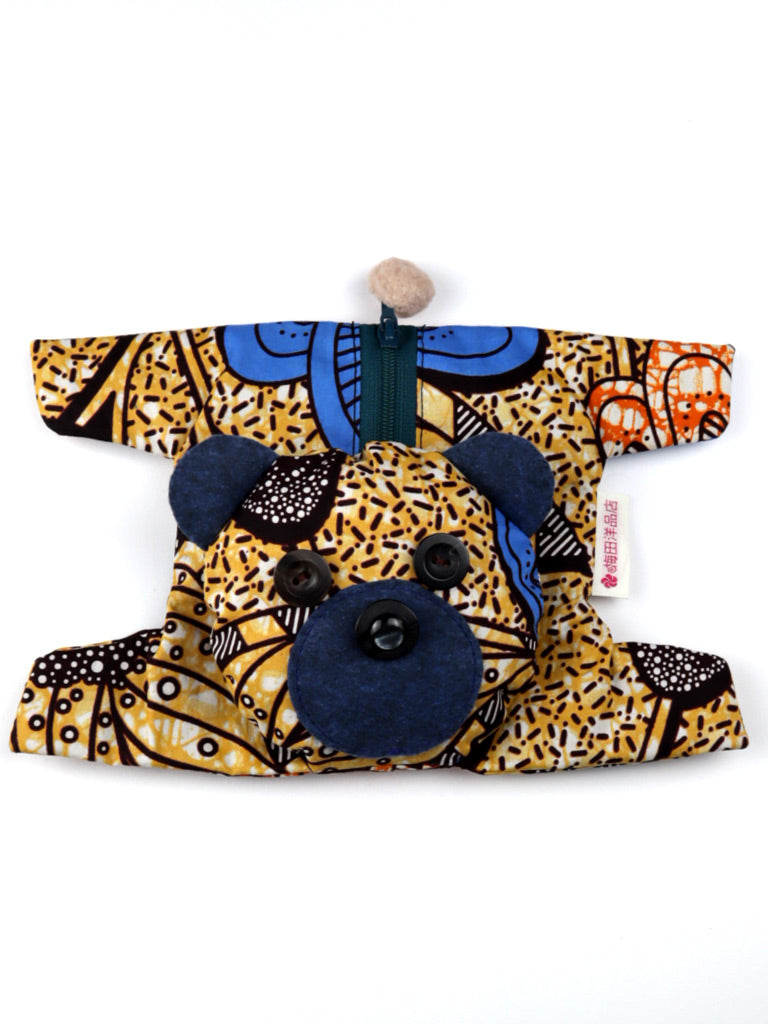 西アフリカのプリント布で作った熊のポーチです。