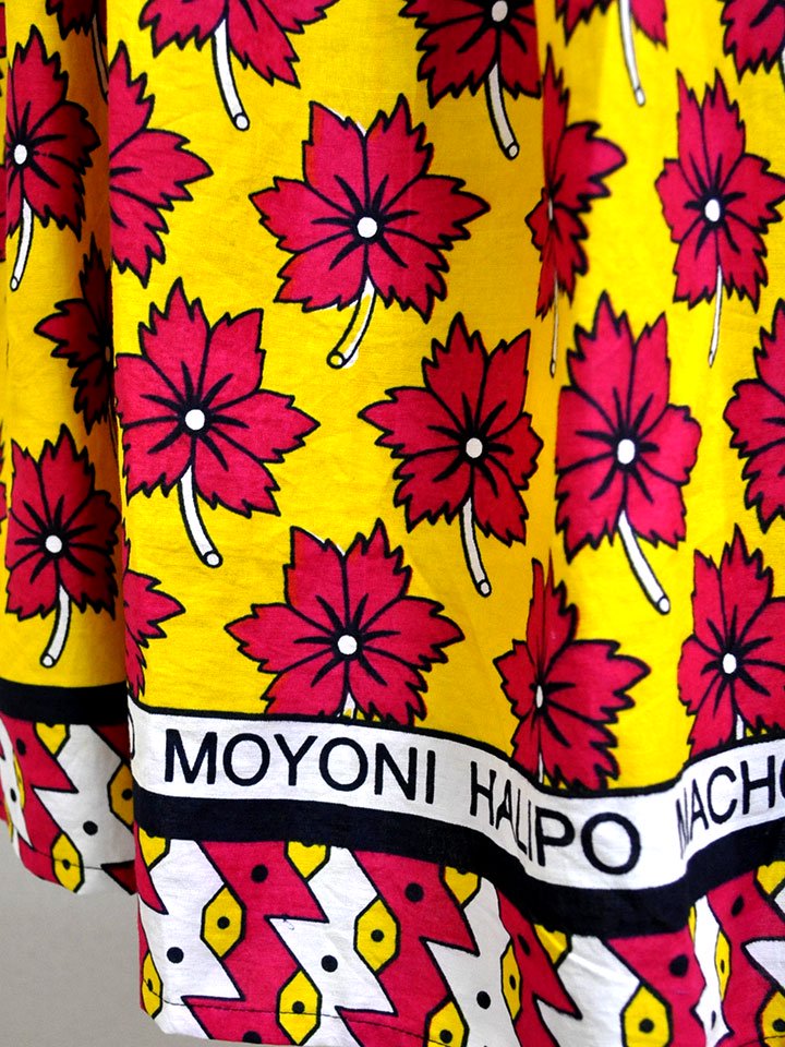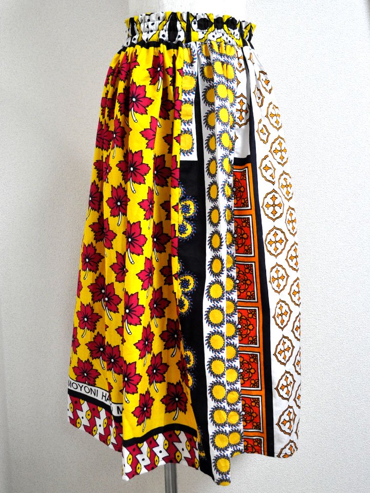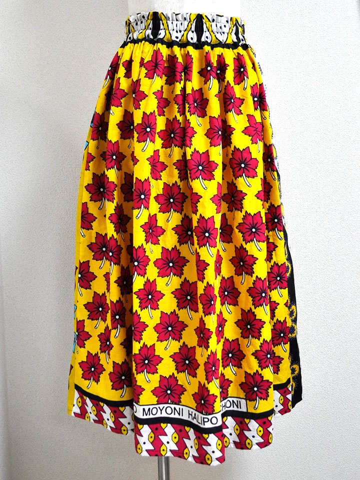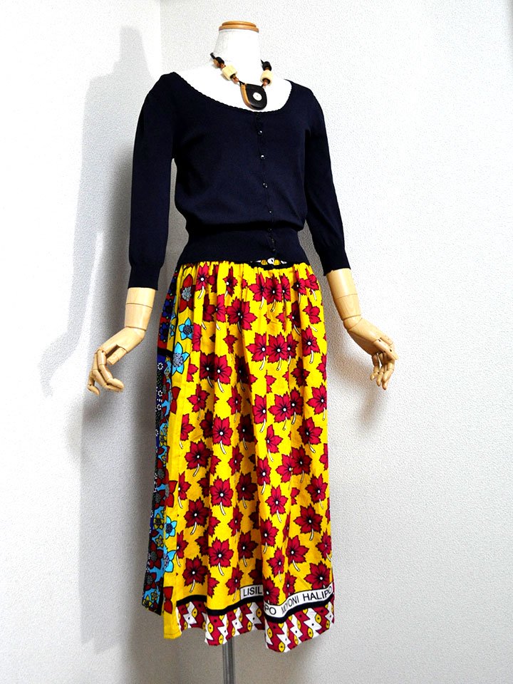 カンガのパッチワークロングスカート・イエロー×レッドフラワー