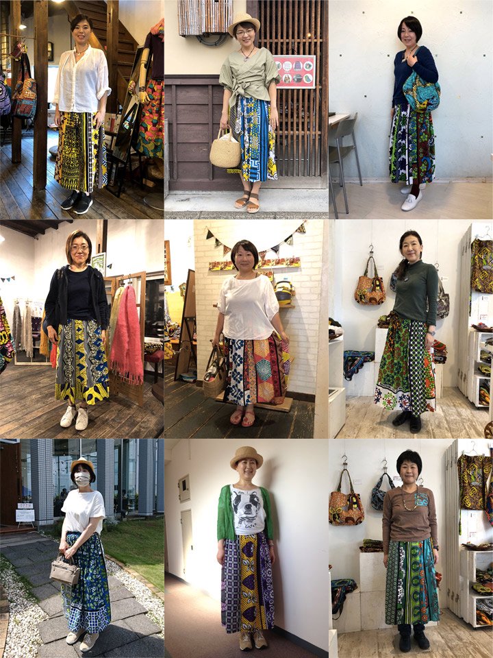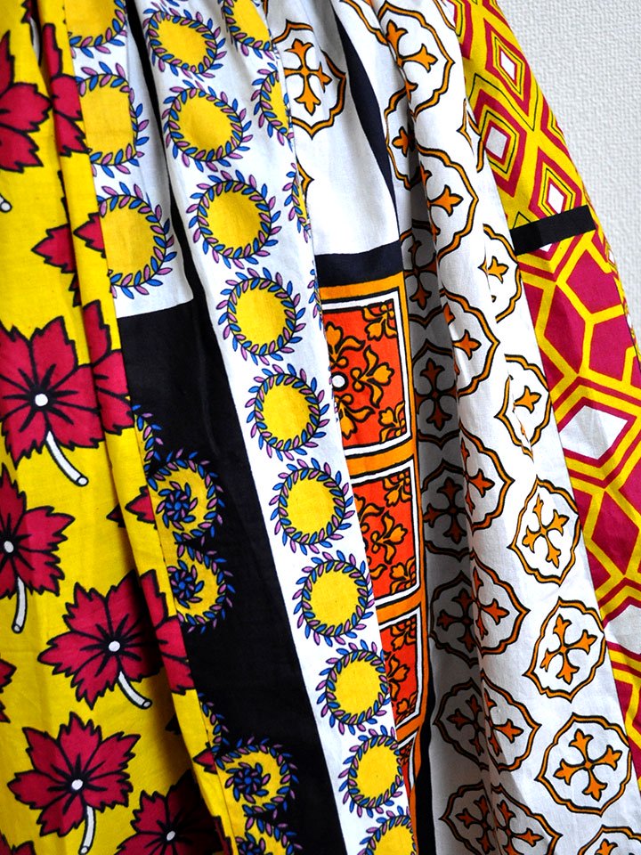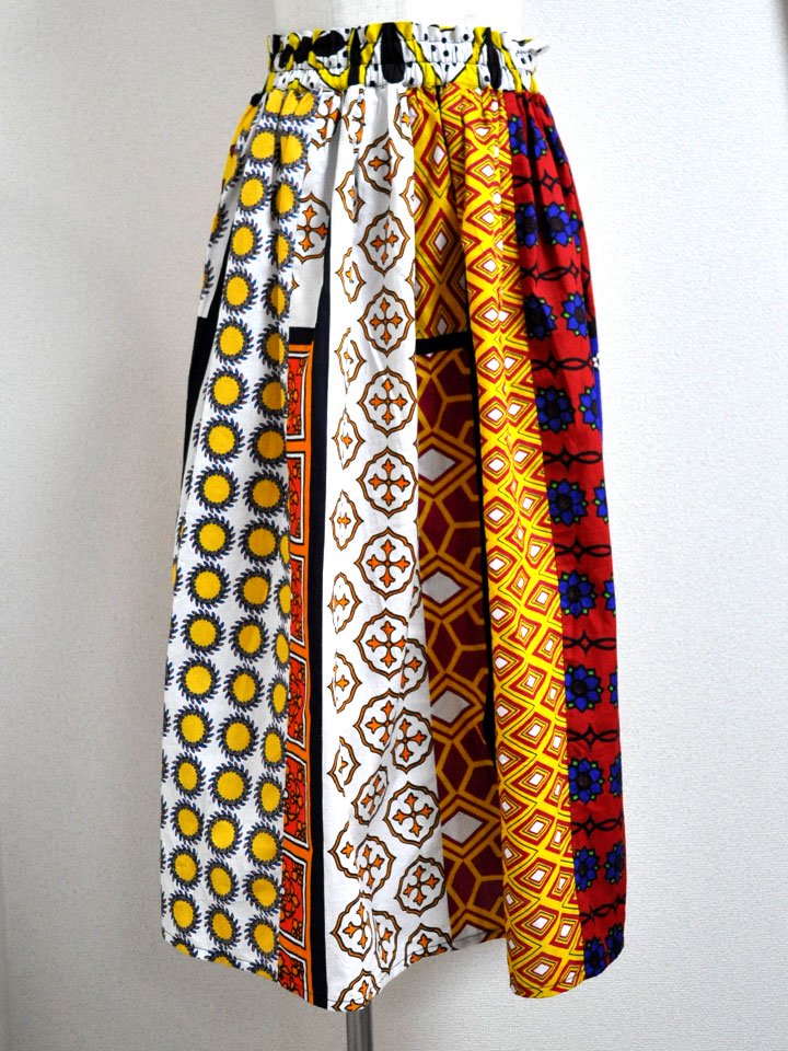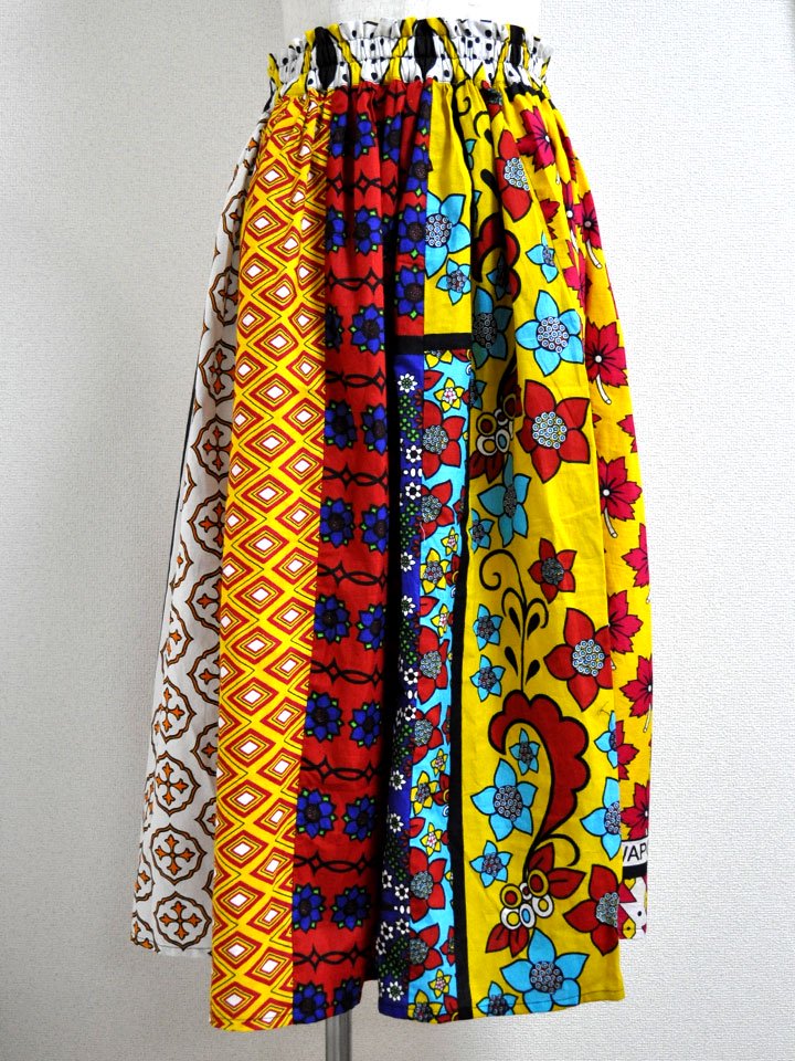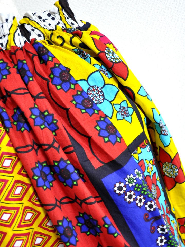 6枚の柄違いのカンガ(東アフリカの布)を贅沢に使った一点もののロングスカートです。