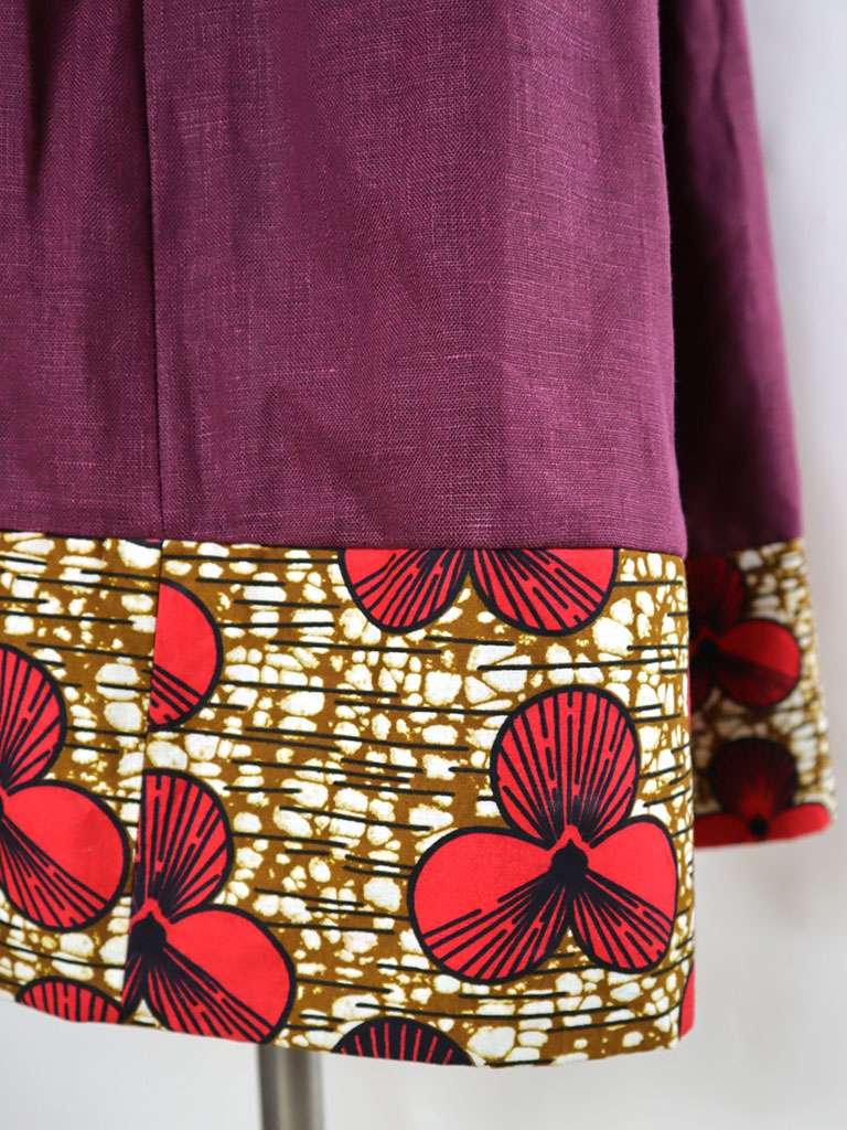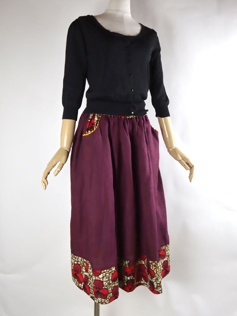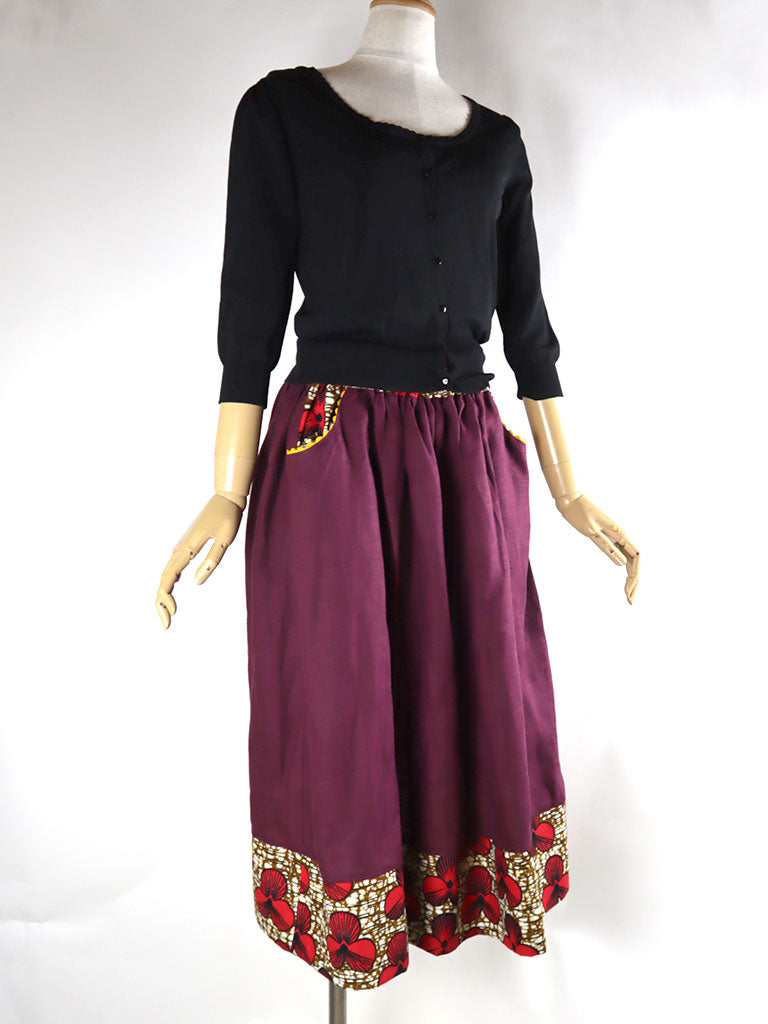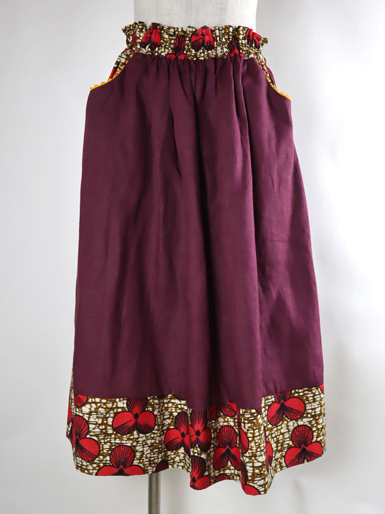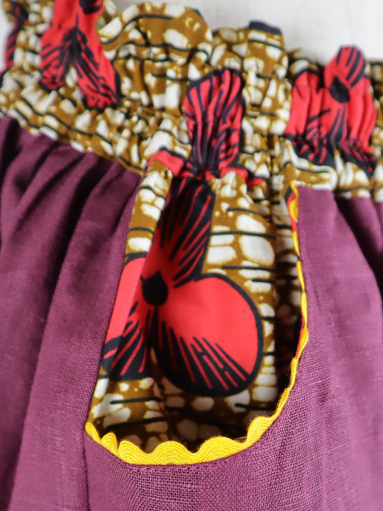 ウエストベルト、ポケット、裾の切り替えから下はアフリカンプリント。