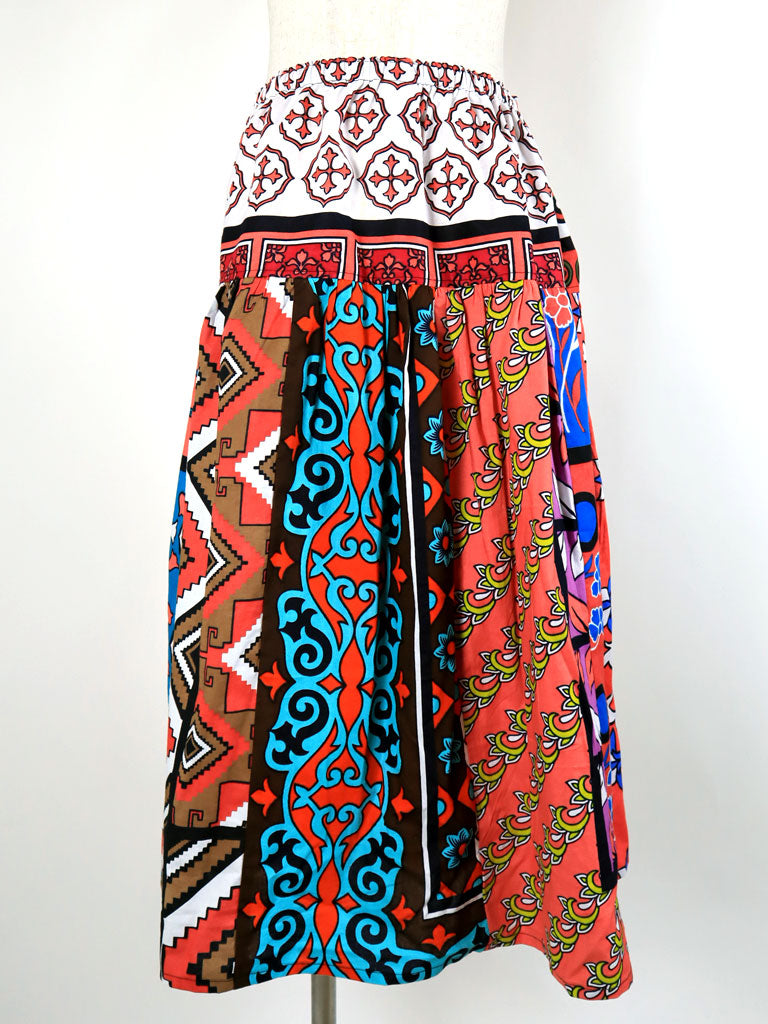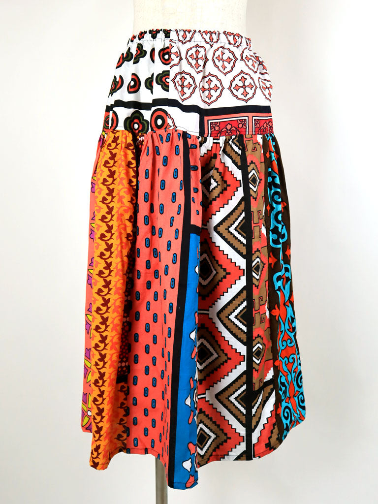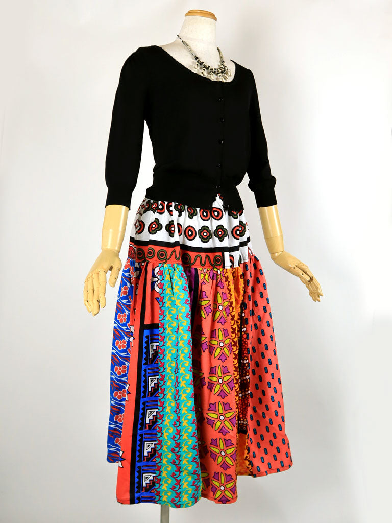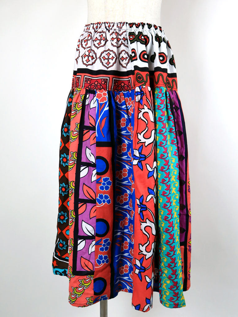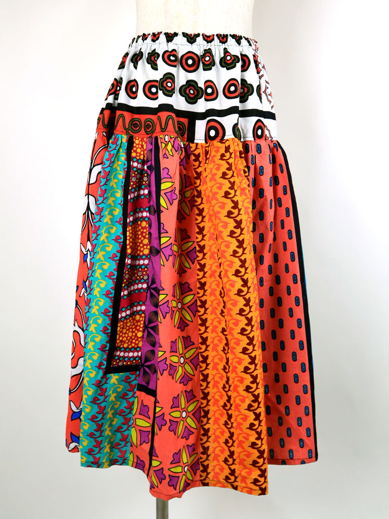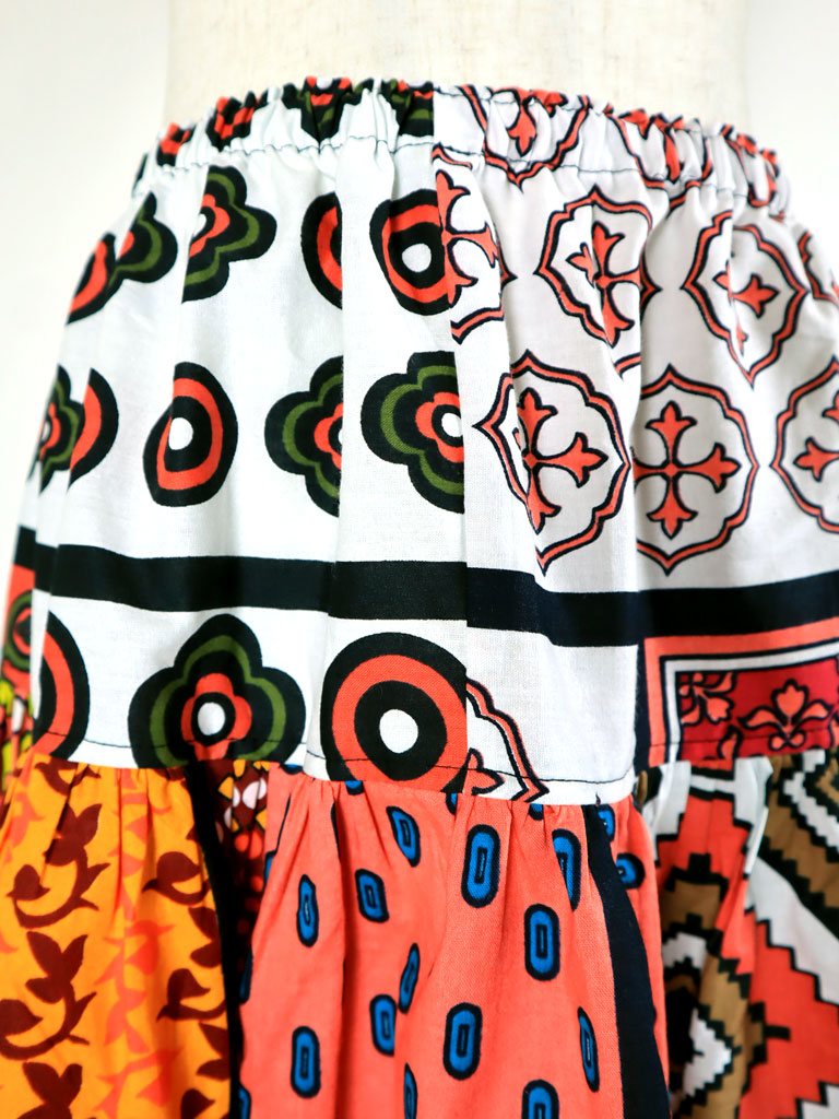 9枚の柄違いのカンガ(東アフリカの布)を贅沢に使った一点もののロングスカートです。