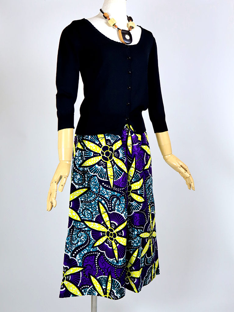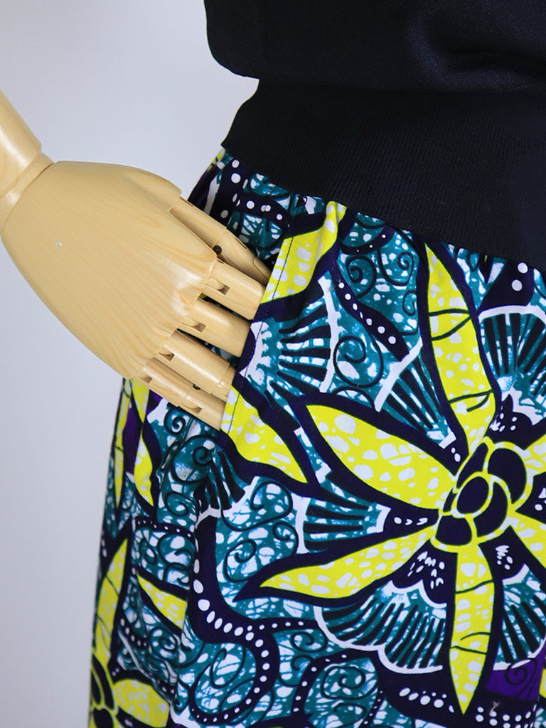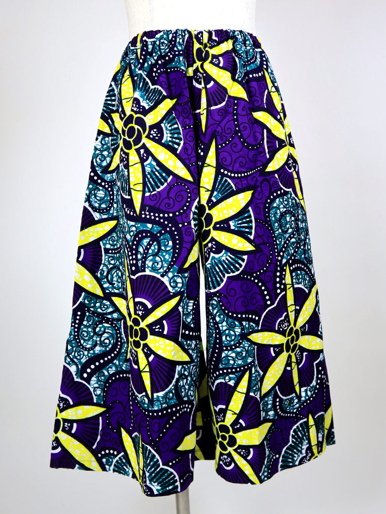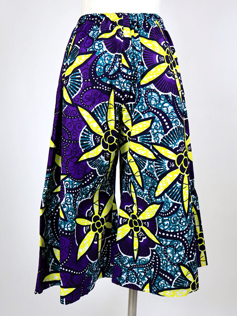 ゆったりとしていて動きやすい、アフリカンプリントでつくった「ガウチョパンツ」です。