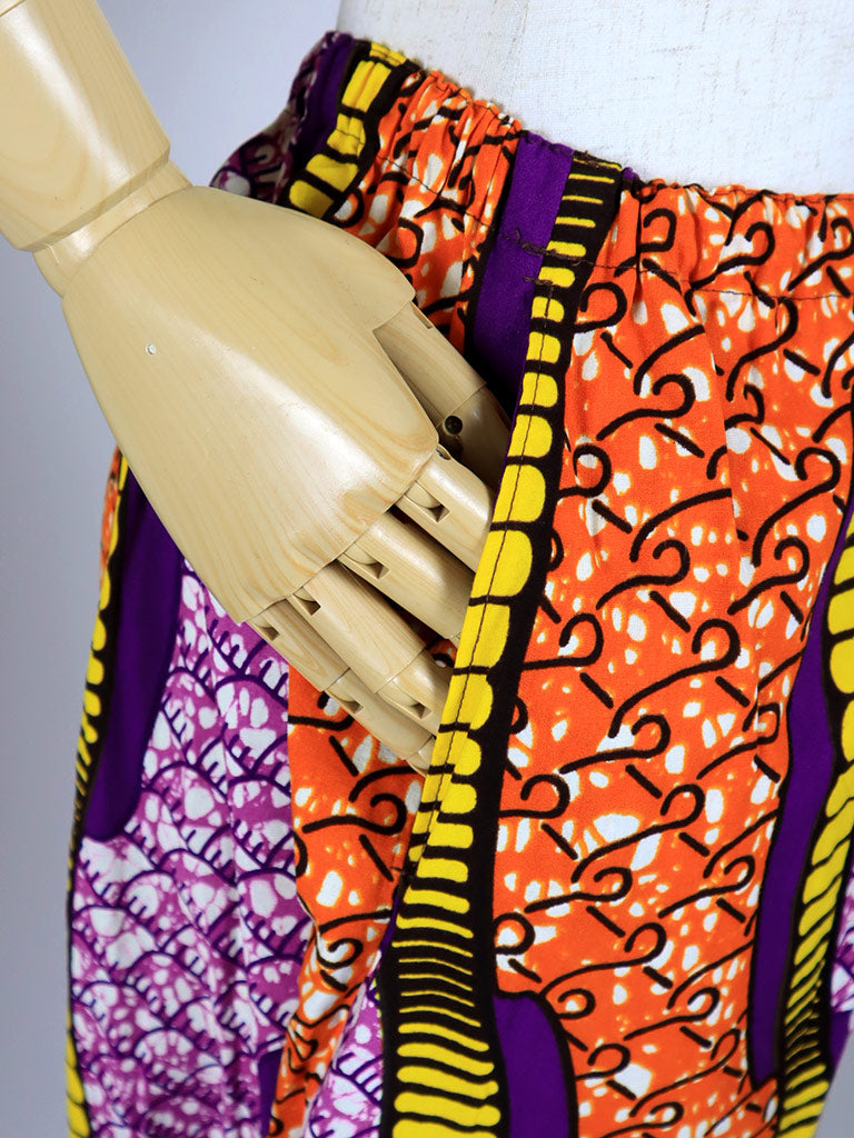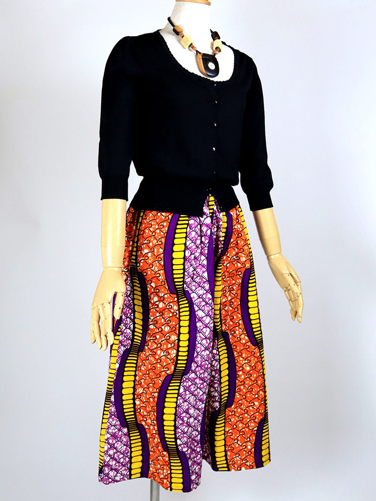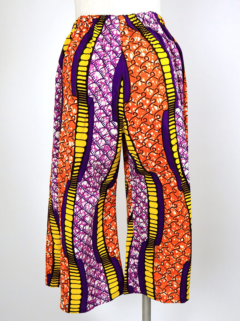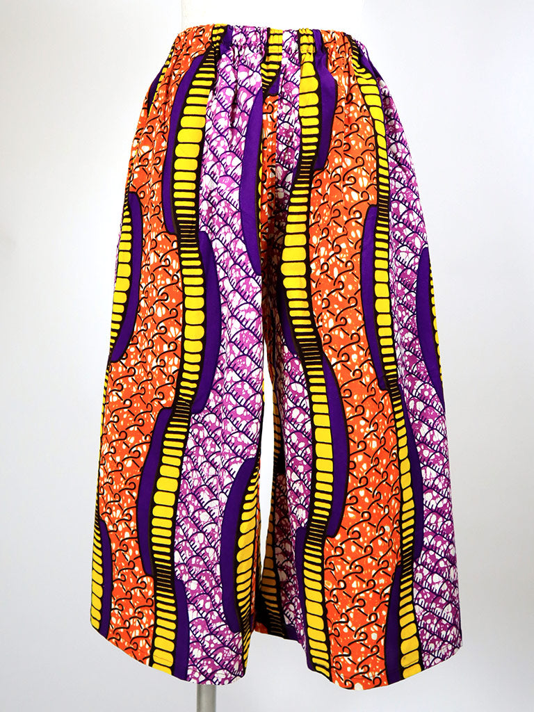 ゆったりとしていて動きやすい、アフリカンプリントでつくった「ガウチョパンツ」です。