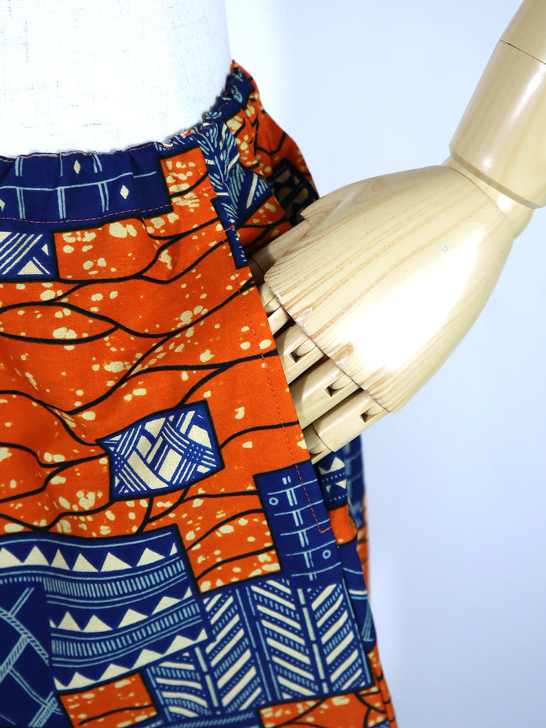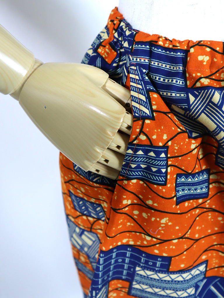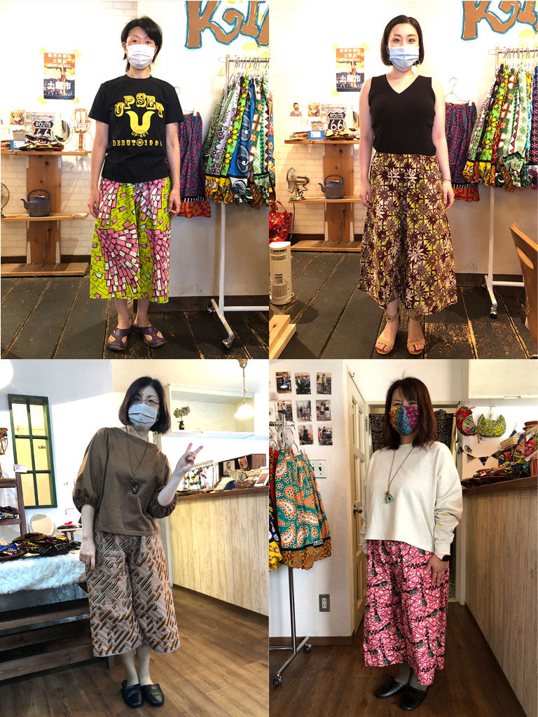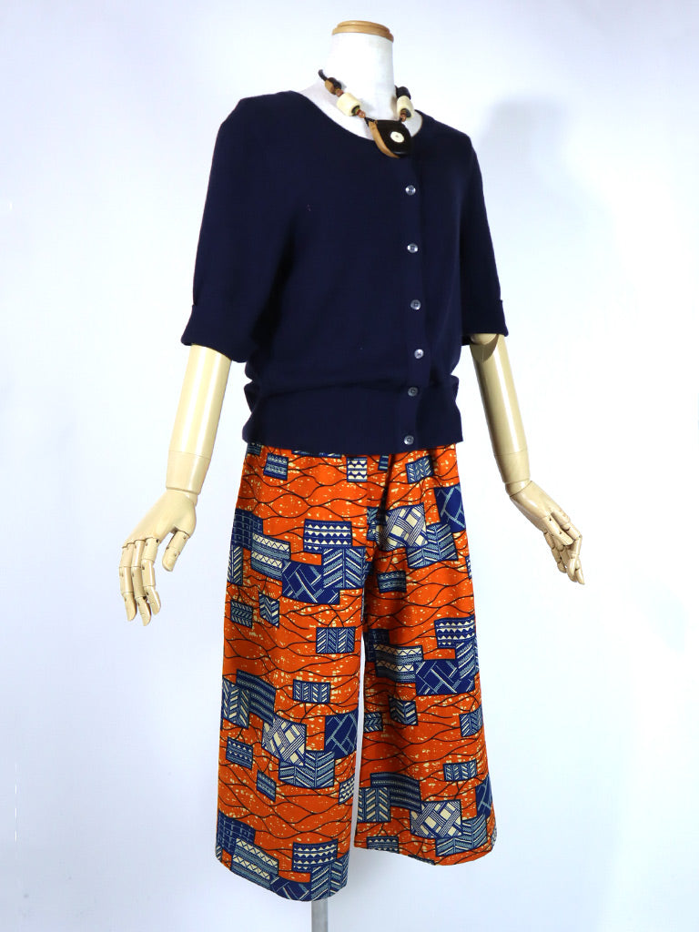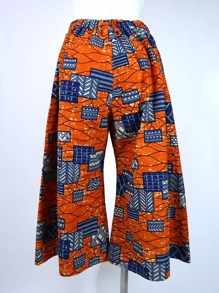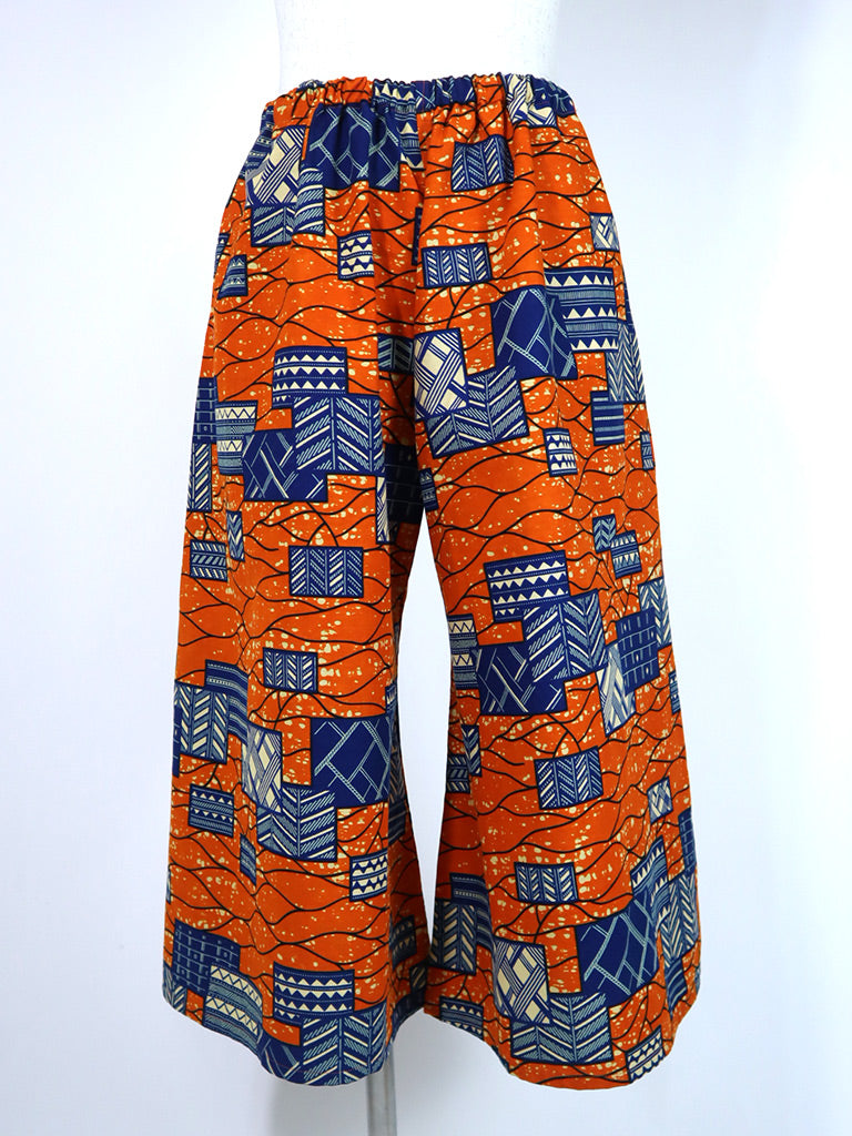 ゆったりとしていて動きやすい、アフリカンプリントでつくった「ガウチョパンツ」です。