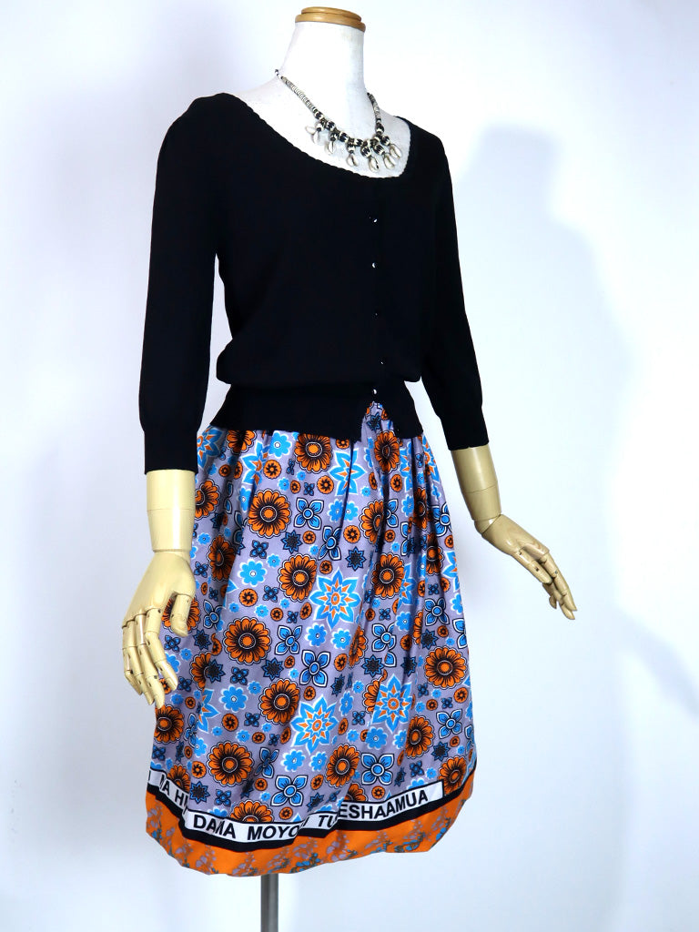 カンガのバルーンスカート・グレー×オレンジフラワー