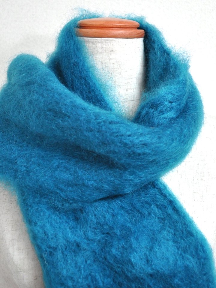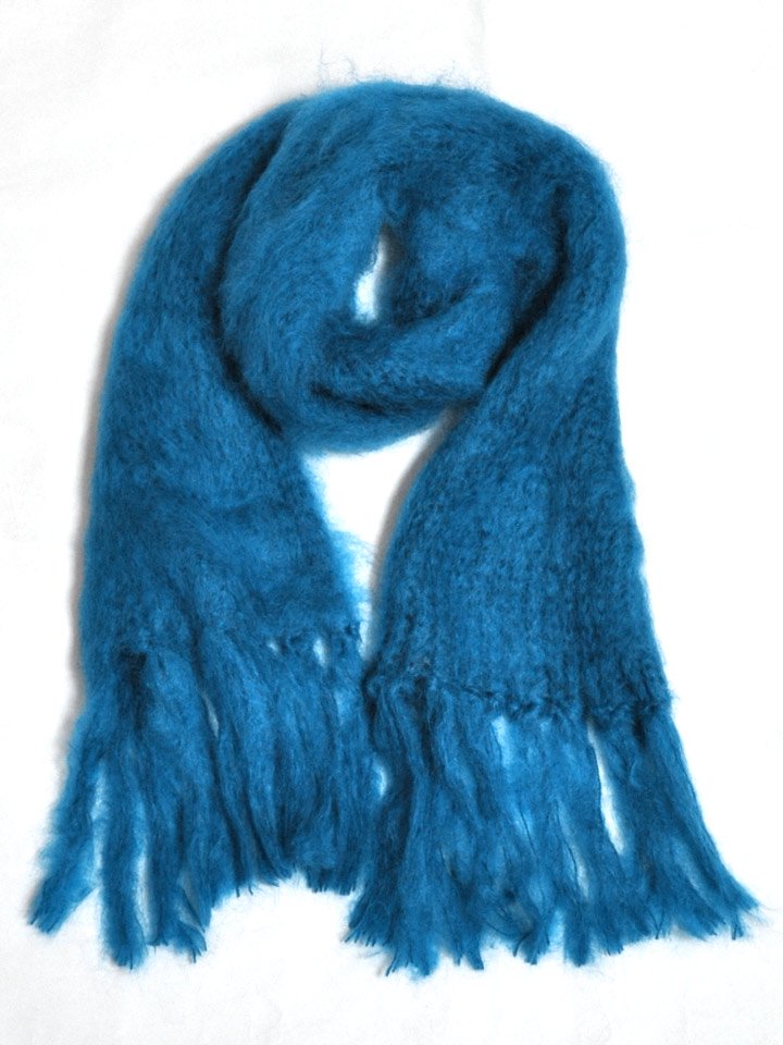 南アフリカのモヘアのマフラー・ターコイズブルー